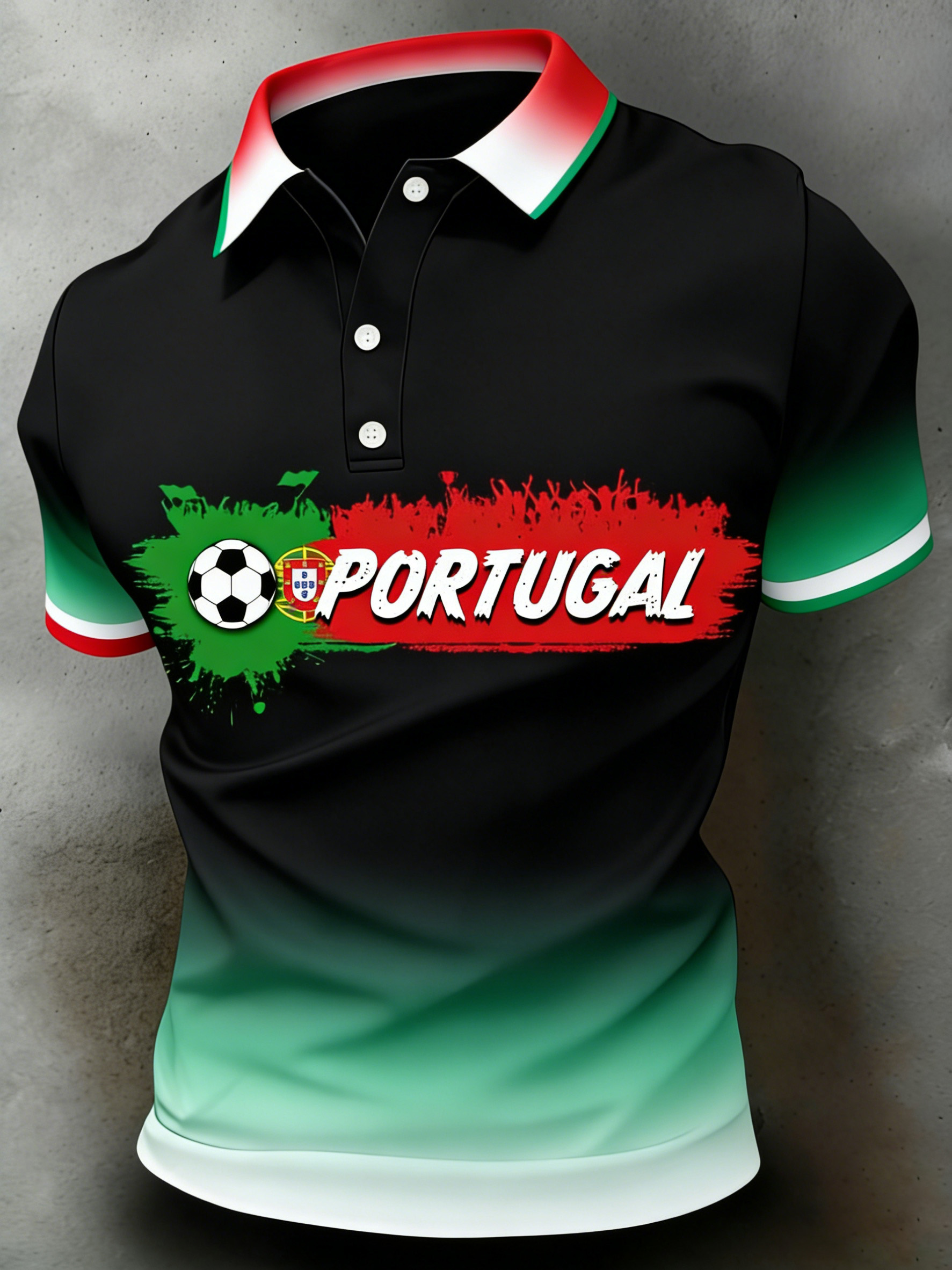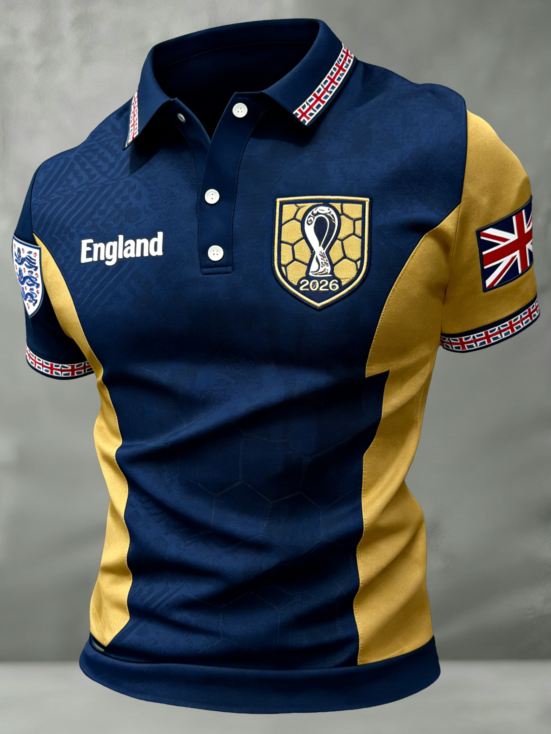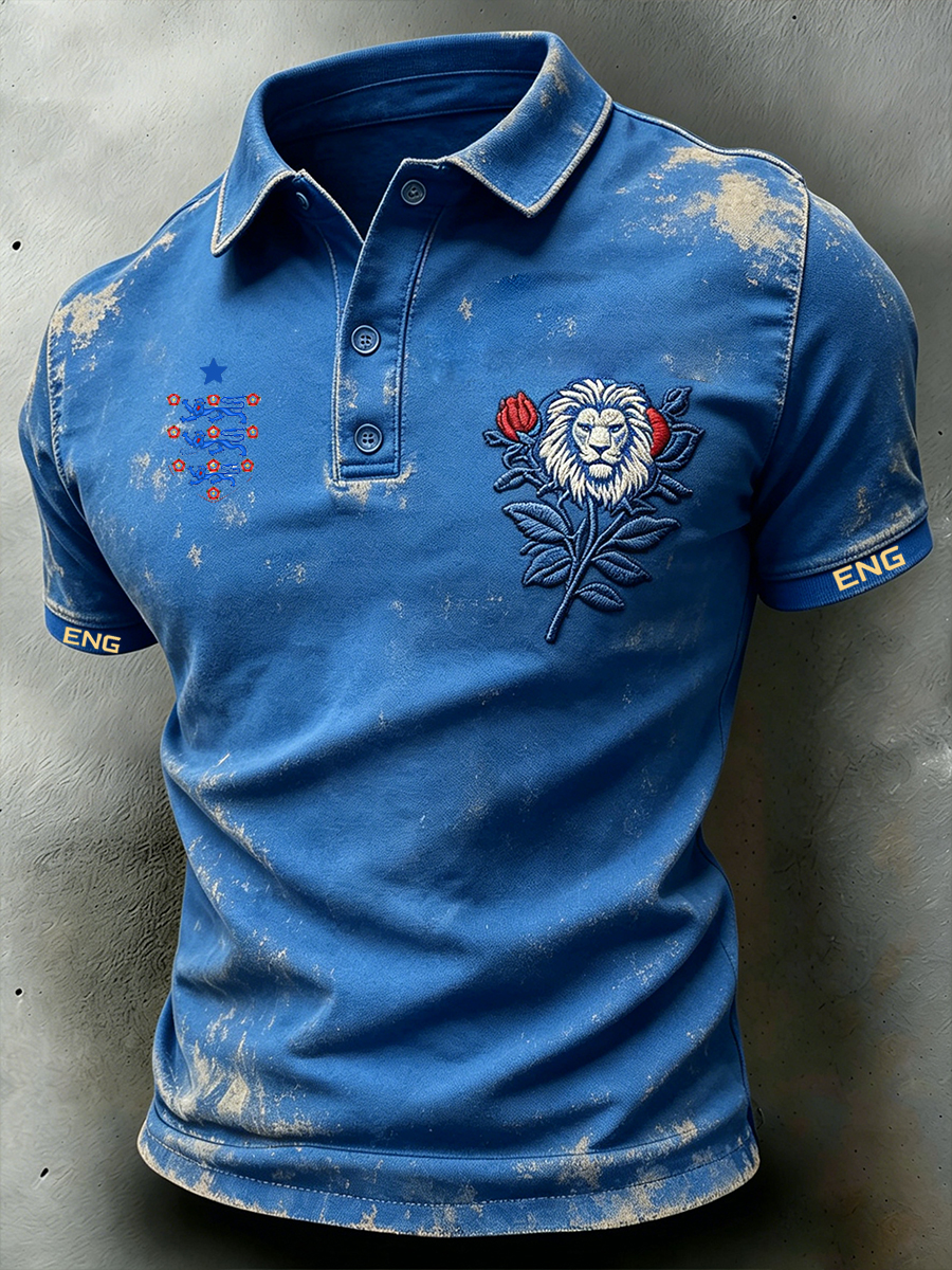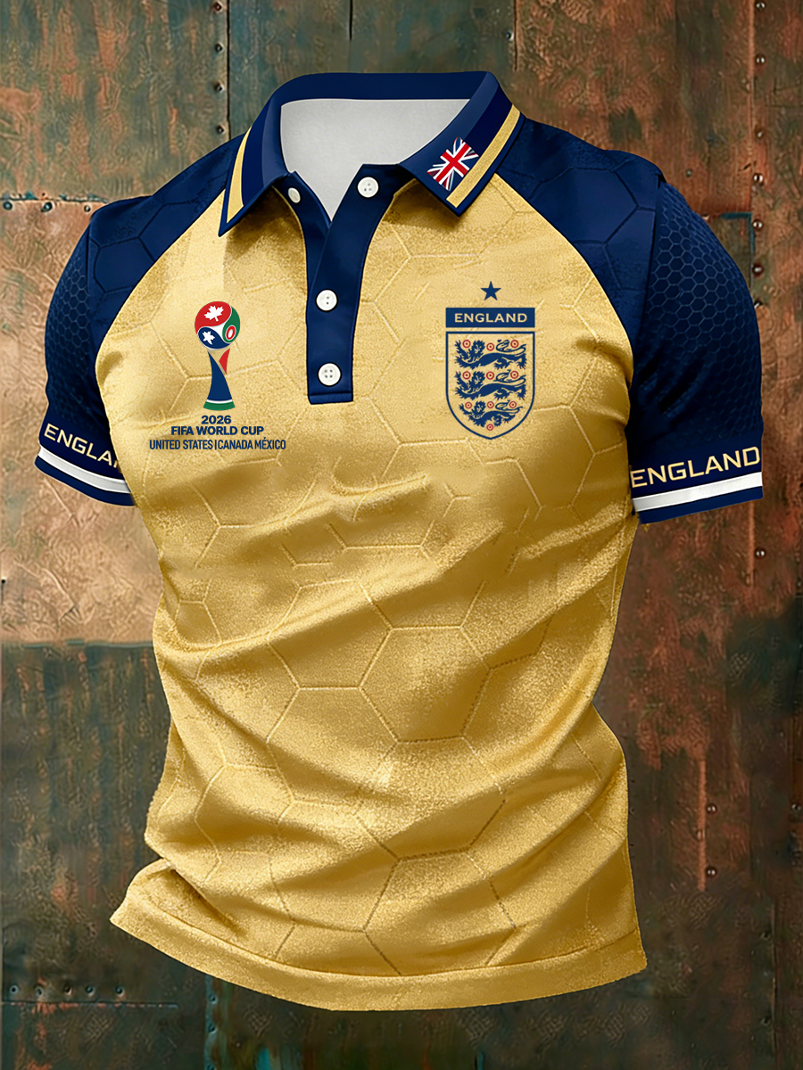 Men's British Football-Themed Polo Shirt with Artistic Print and Contrast Paneling