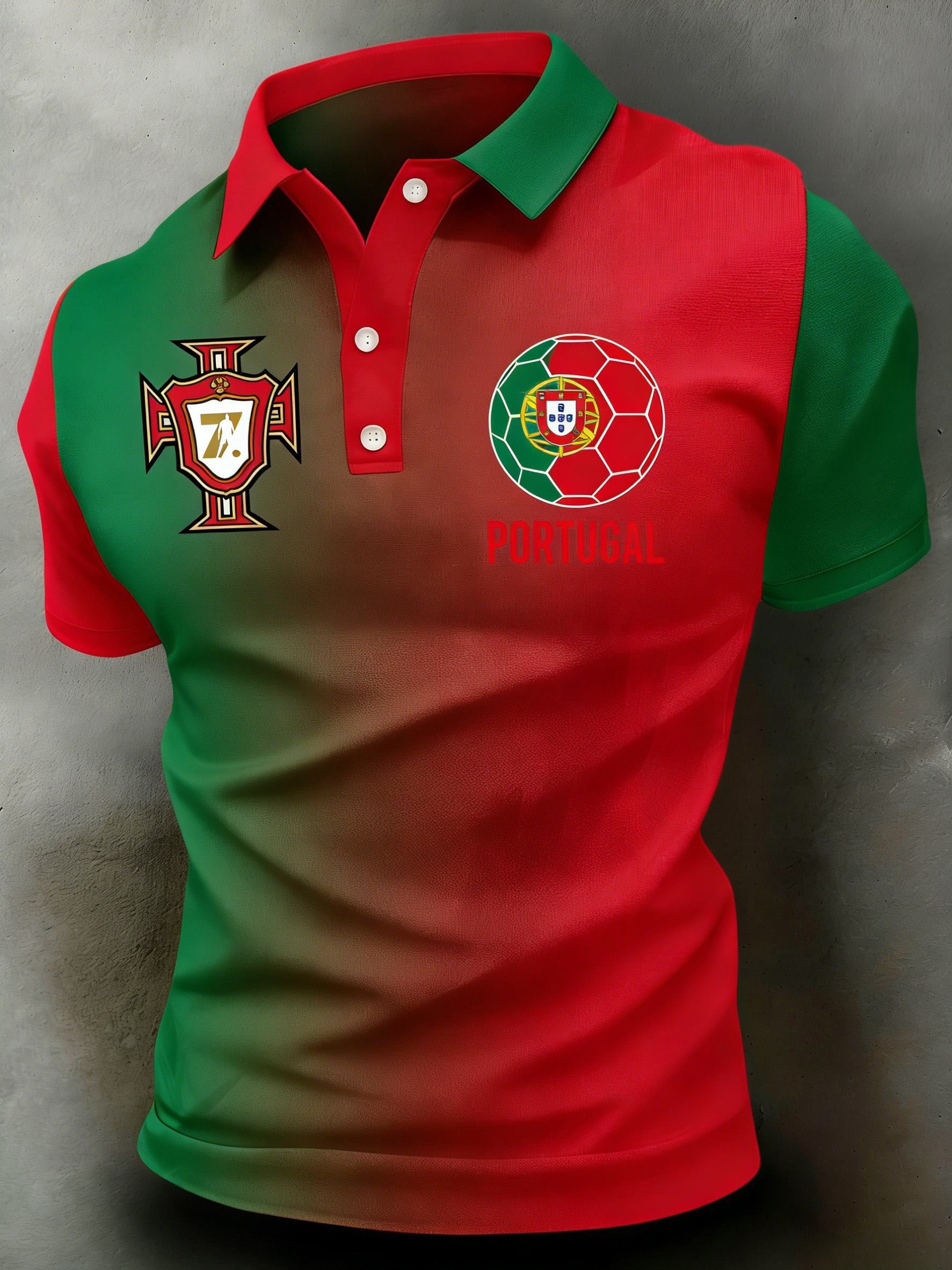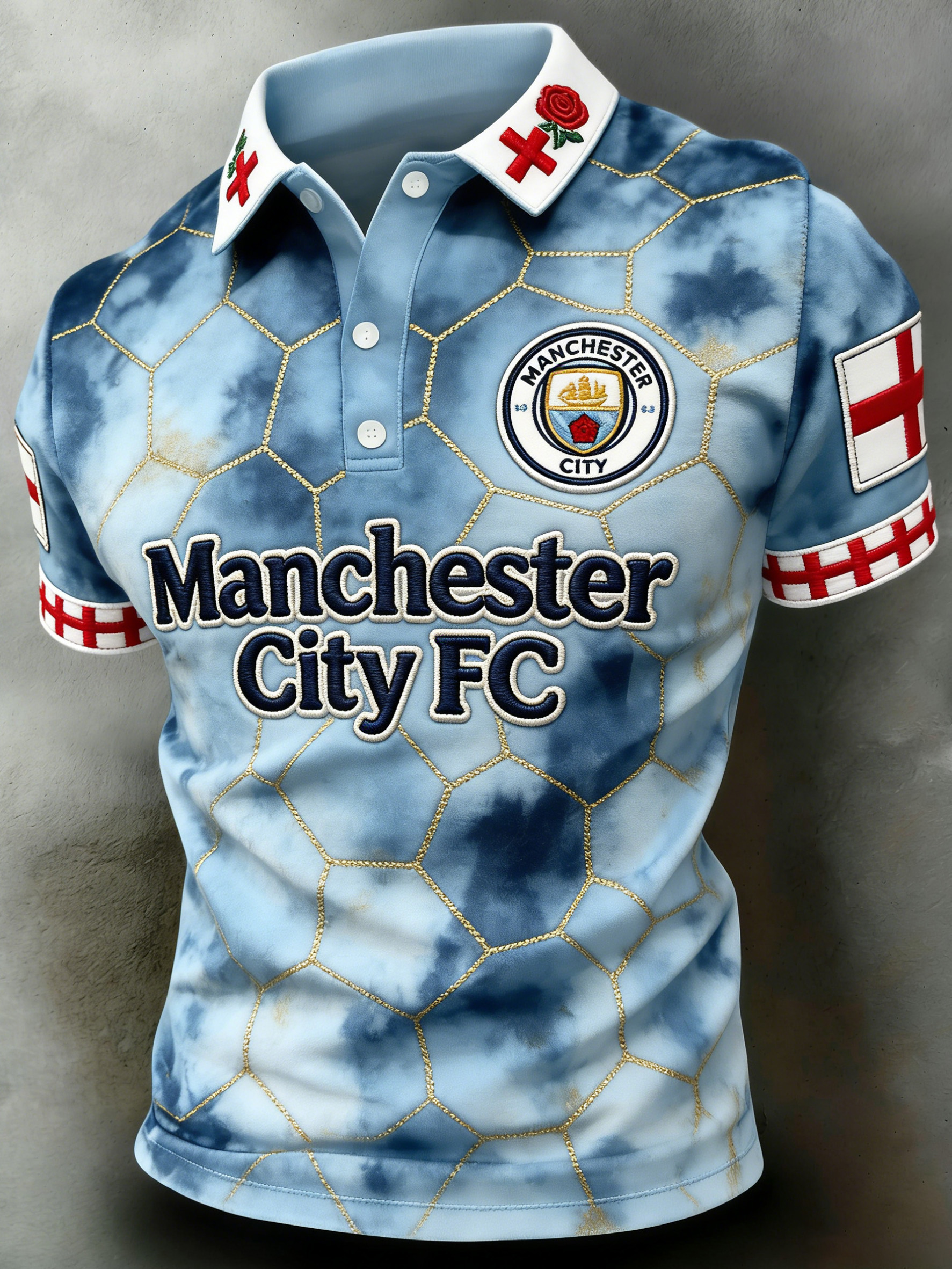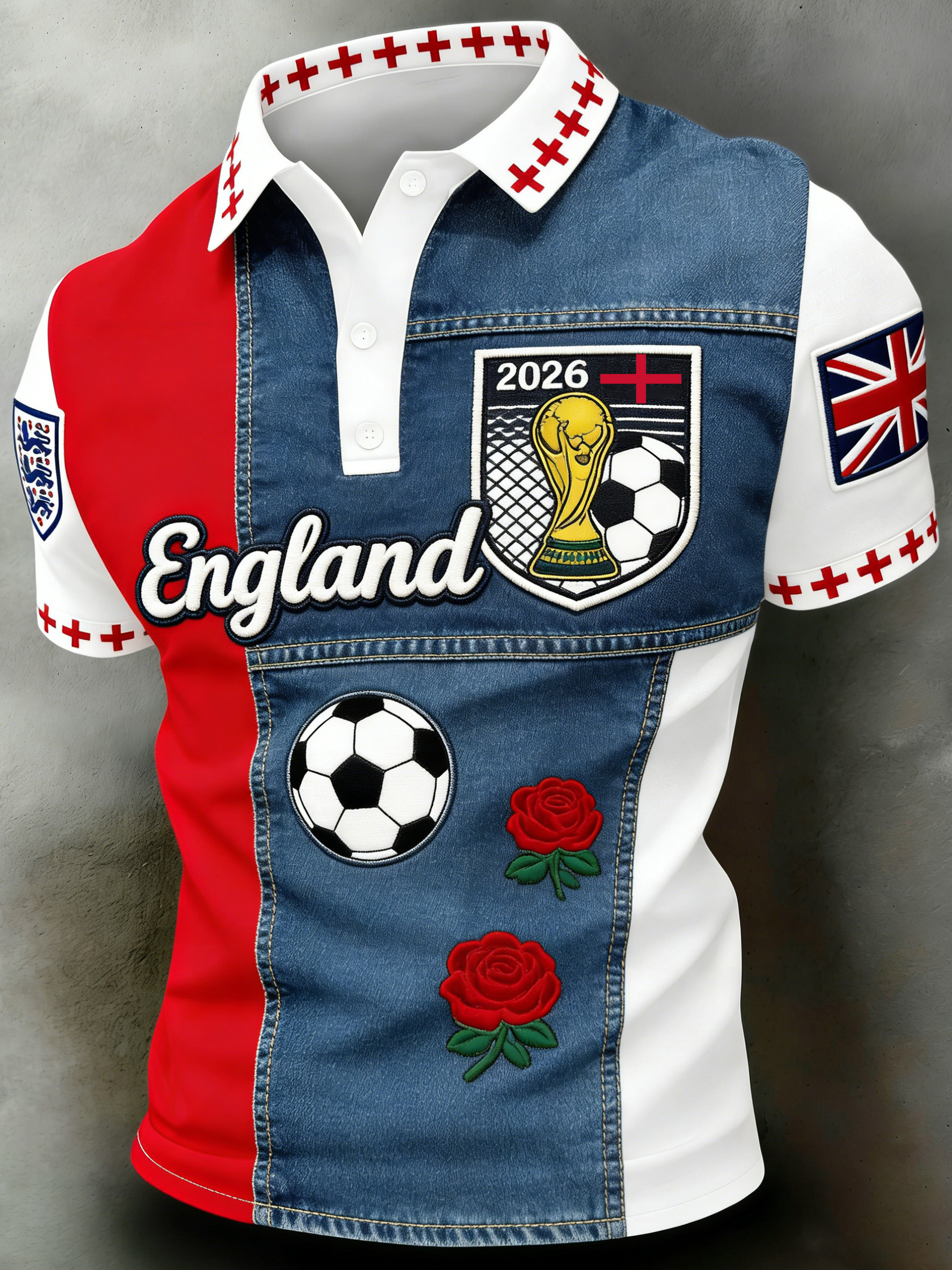 Men's British Football-Themed Polo Shirt with Artistic Print and Contrast Paneling