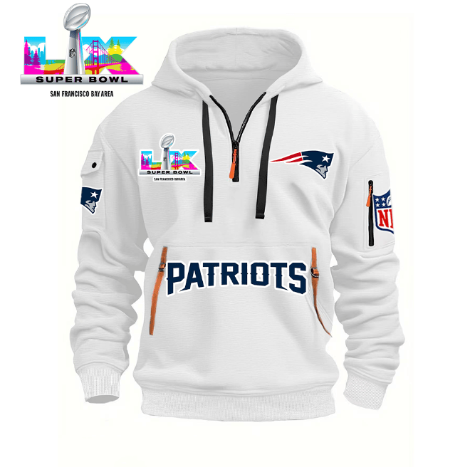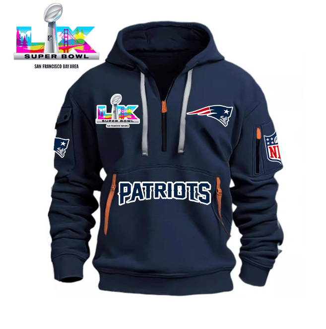 Unisex "New England Patriots" Graphic Streetwear Vintage HALF ZIPPER Hoodie