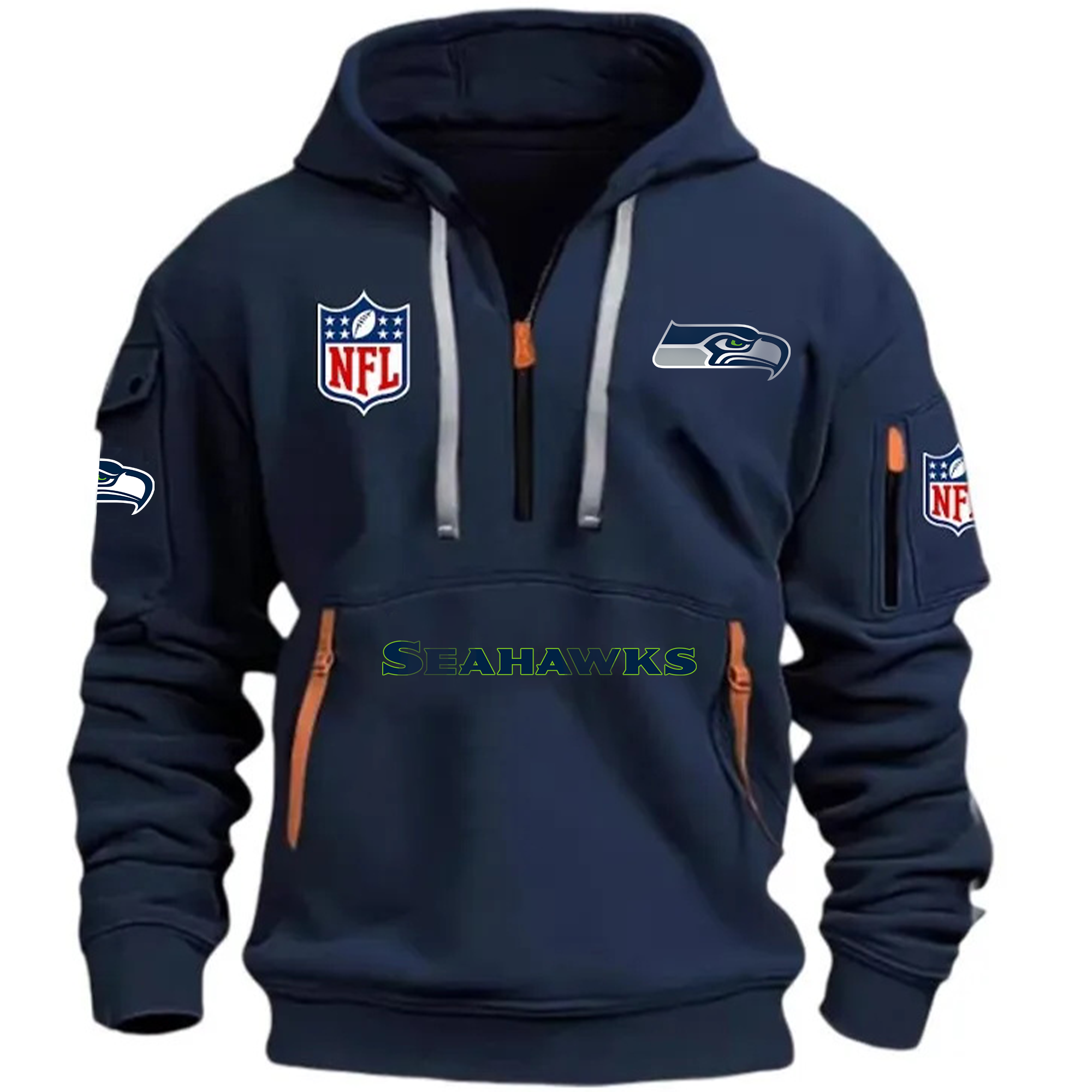 Unisex "seattle seahawks" Graphic Streetwear Vintage HALF ZIPPER Hoodie