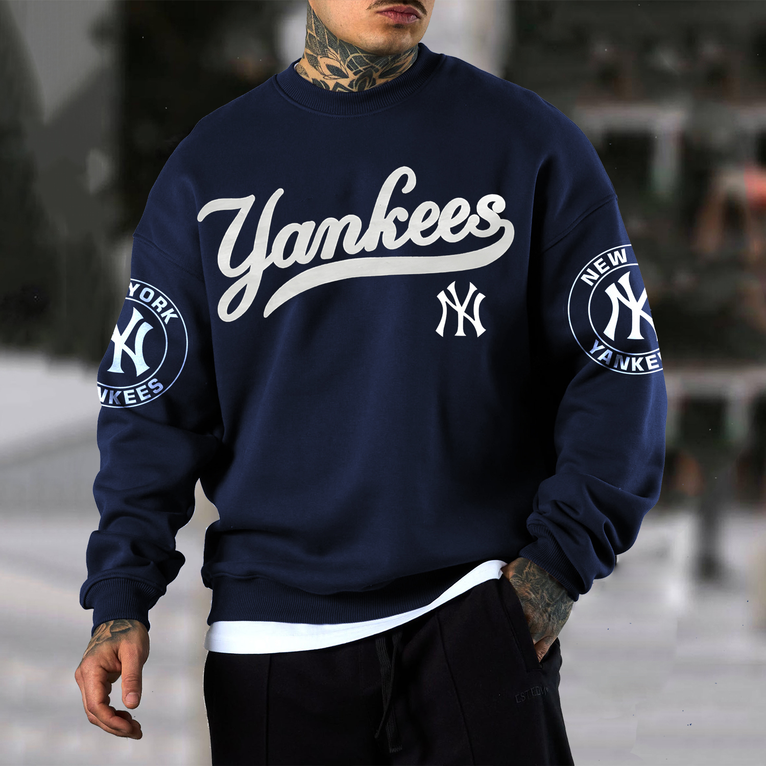 Oversized Casual Men's "New York Professional Baseball Print"ed T-Shirt