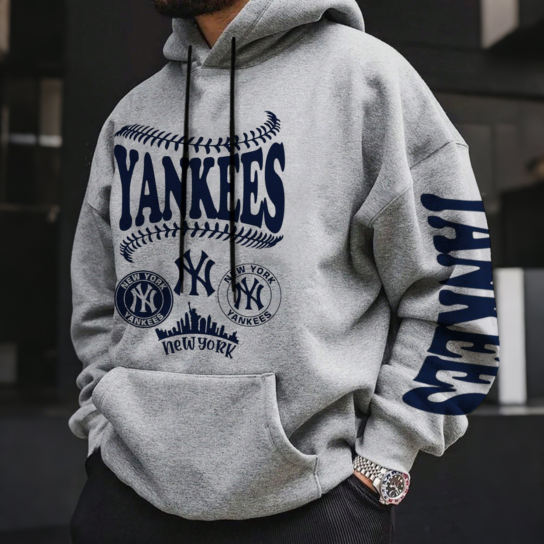 Men's Baseball Print Oversized Hoodie
