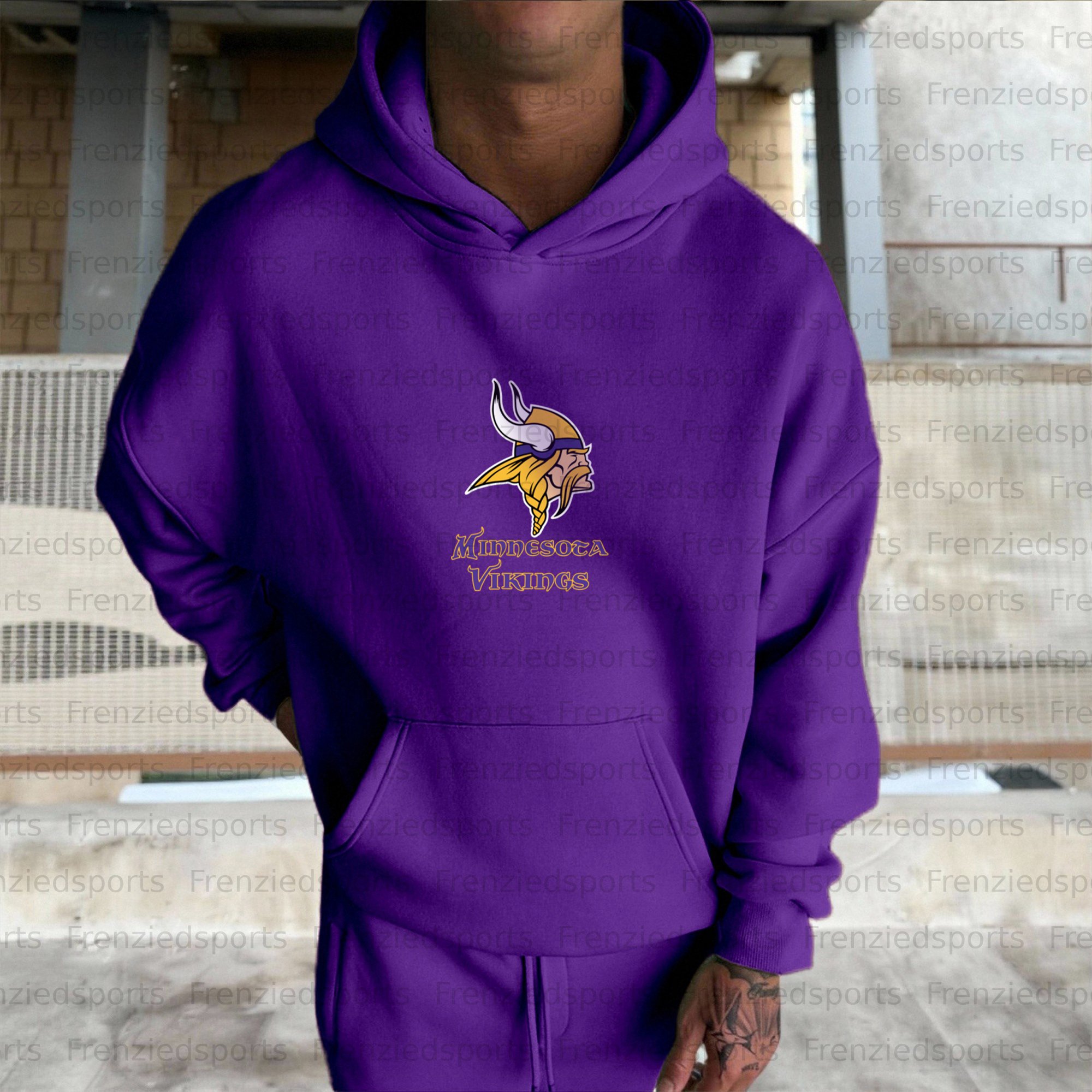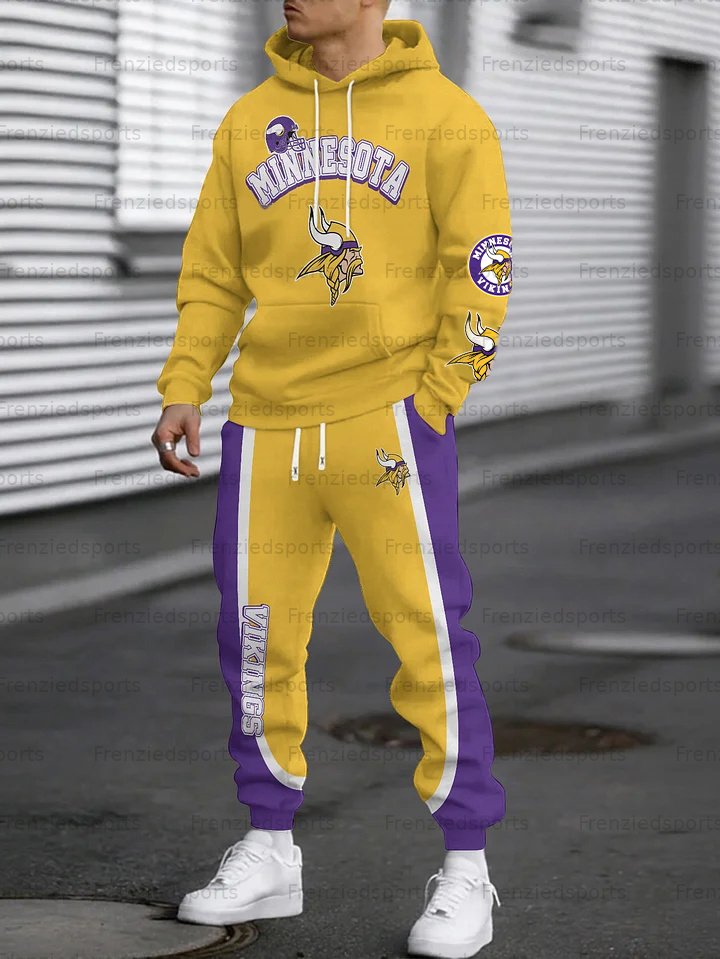 (Fleece-Lined Hoodie) Minnesota Vikings Hoodie & Pants 2 Pieces Set