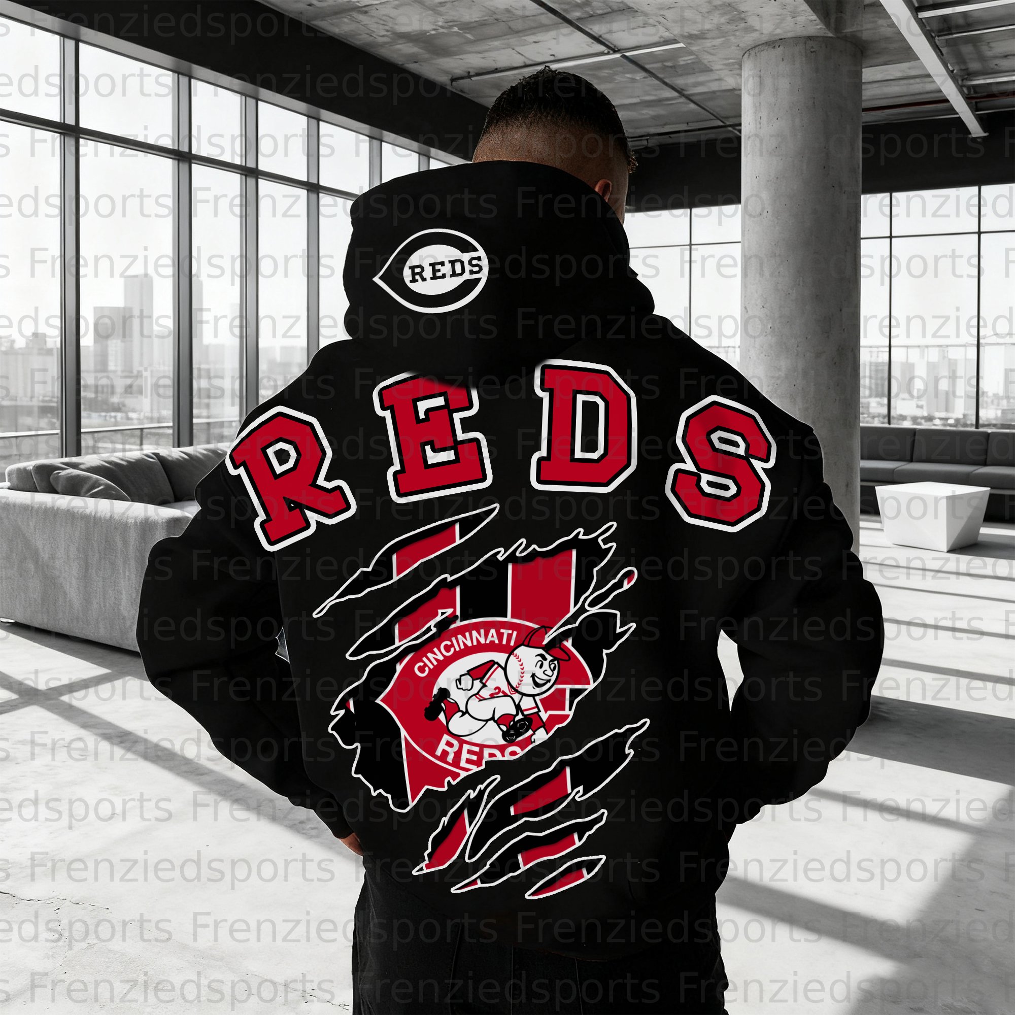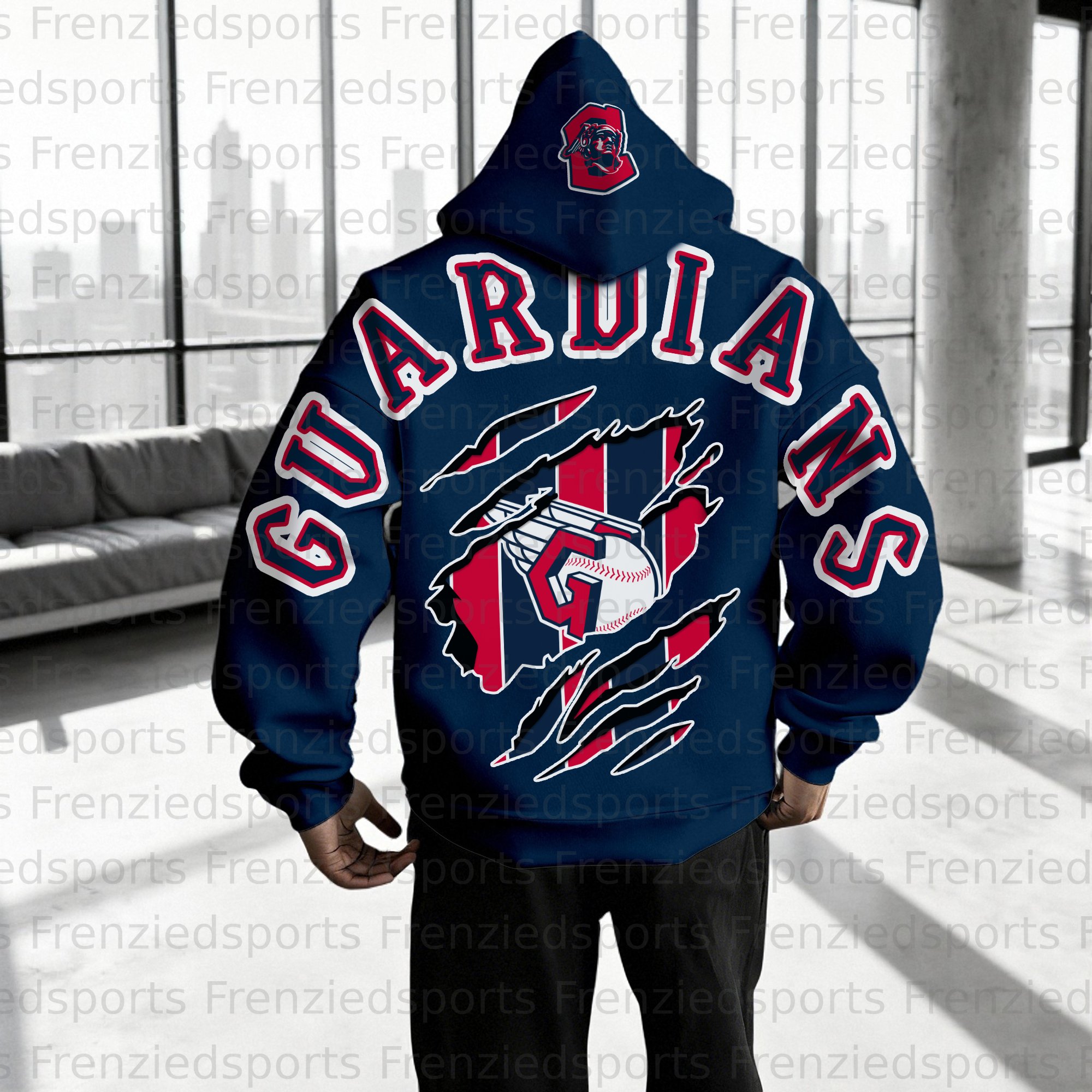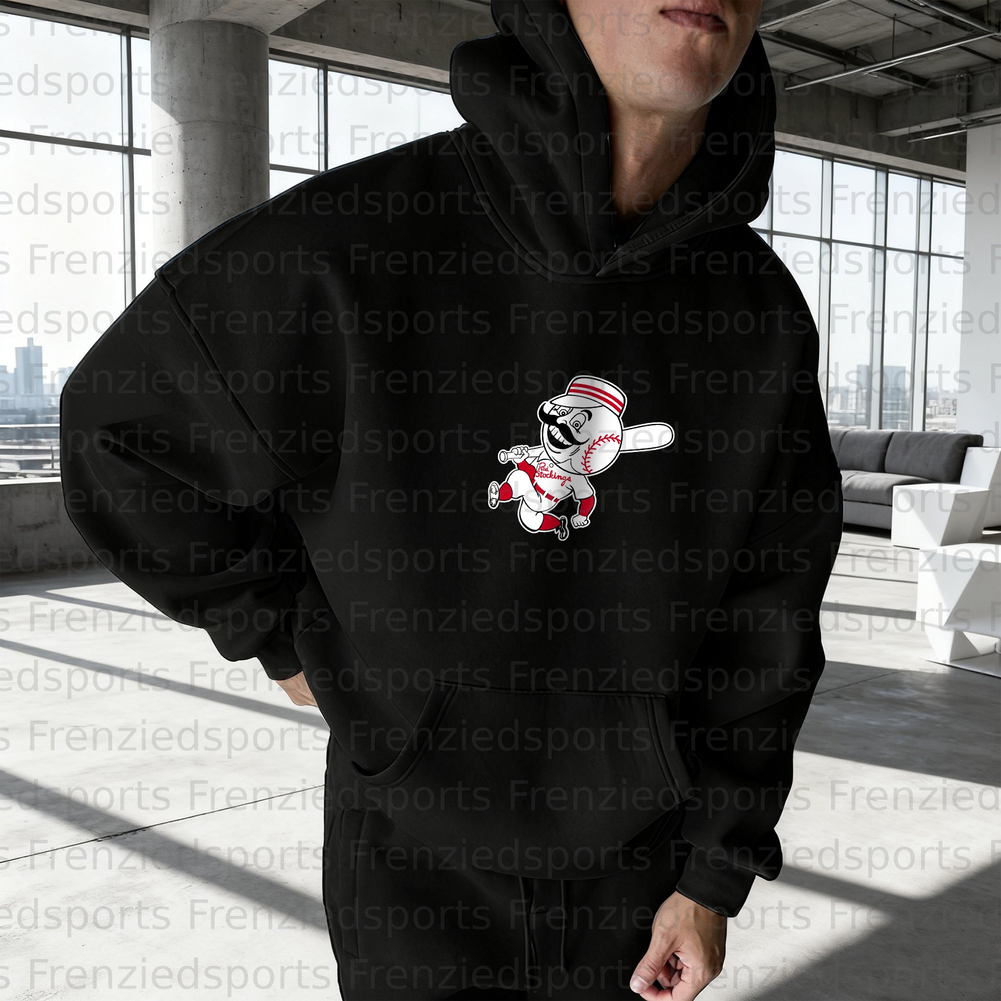 Simple Casual Baseball Print Oversized Hoodie