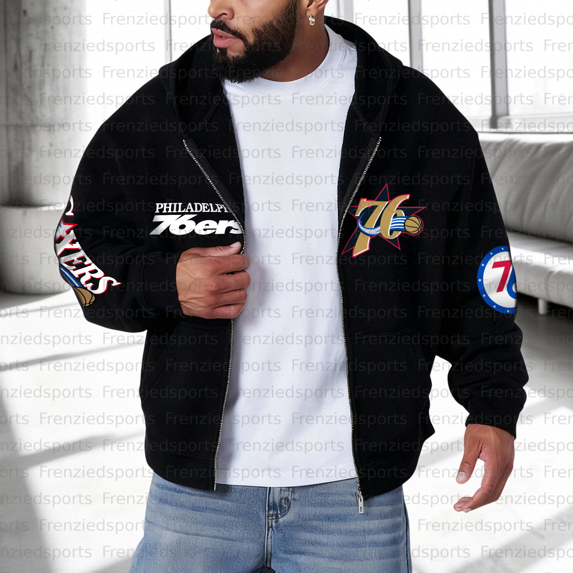 Unisex "Philadelphia 76ers" Graphic Streetwear Vintage Zipper Cardigan Hoodie