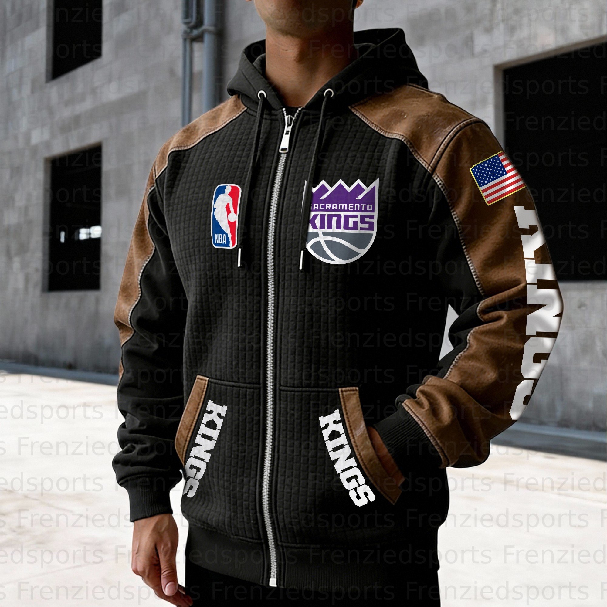 Sacramento Kings Contrasting Shoulder Panels Hooded Zip-Up Jacket
