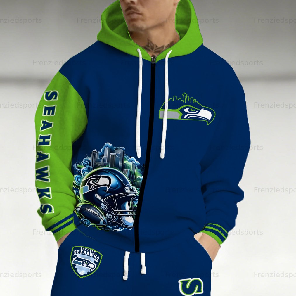 (Fleece-Lined Hoodie) Seattle Seahawks Hoodie & Pants 2 Pieces Set