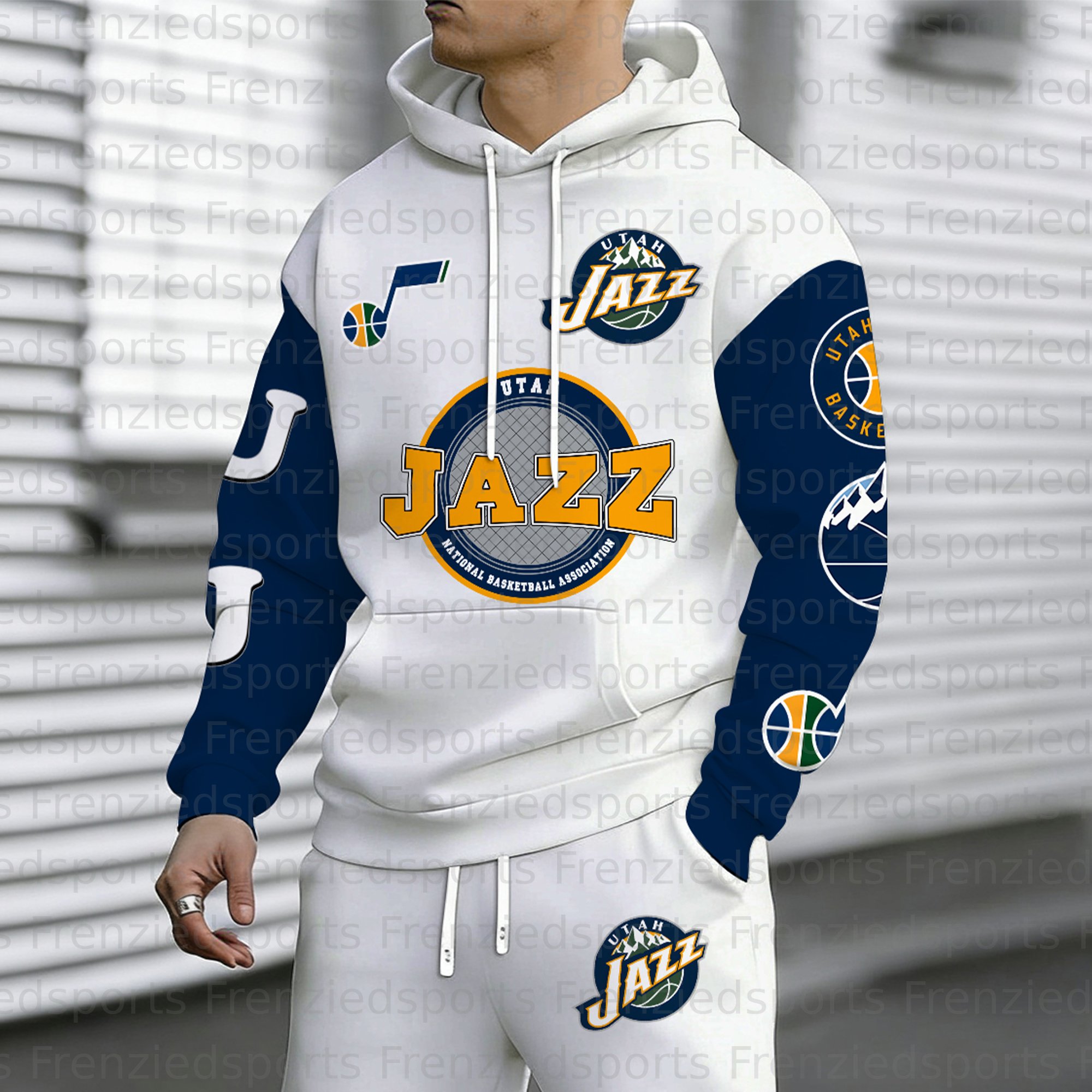 Utah Jazz Contrasting Shoulder Panels Hooded Zip-Up Jacket