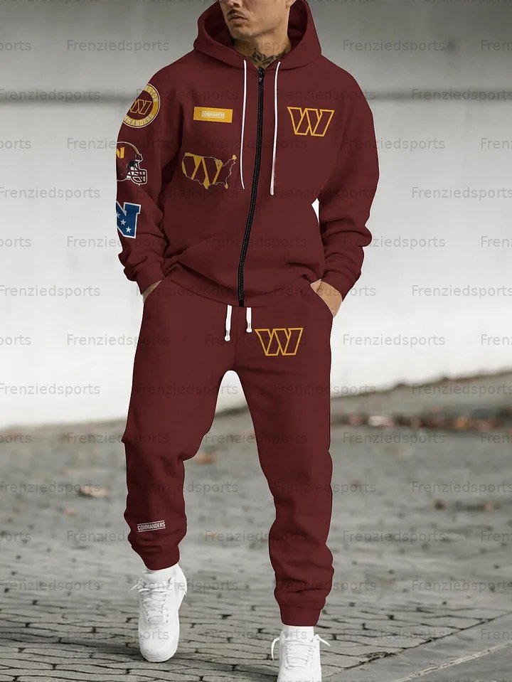 (Fleece-Lined Zip-up Hoodie) Washington Commanders Zip-up Hoodie & Pants 2 Pieces Set