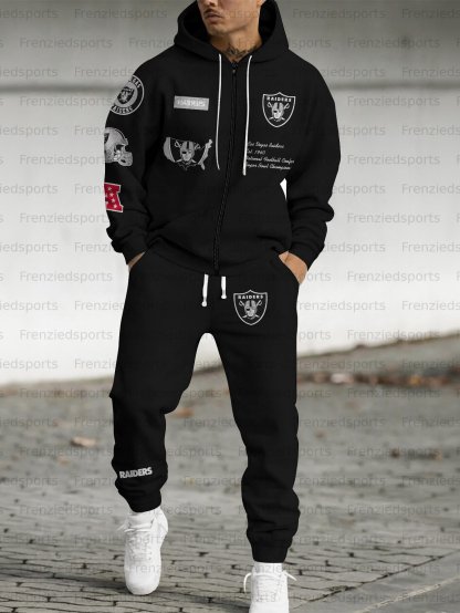 (Fleece-Lined Zip-up Hoodie) Las Vegas Raiders Zip-up Hoodie & Pants 2 Pieces Set