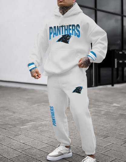 (Fleece-Lined Hoodie) Carolina Panthers 3D Printed Pullover Hoodie And Sweatpant 2pcs Tracksuits
