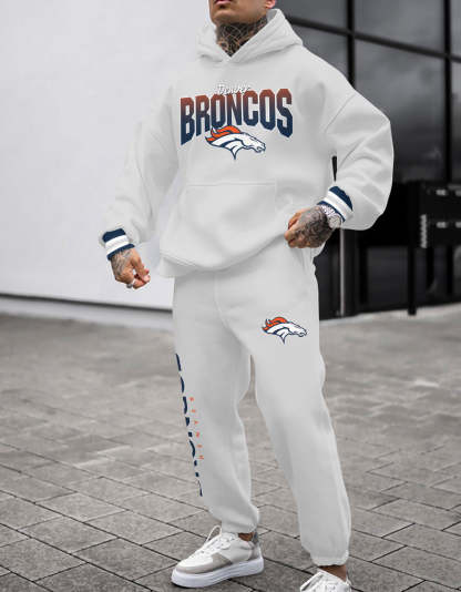 (Fleece-Lined Hoodie) Denver Broncos 3D Printed Pullover Fleece-Lined Hoodie And Sweatpant 2pcs Tracksuits