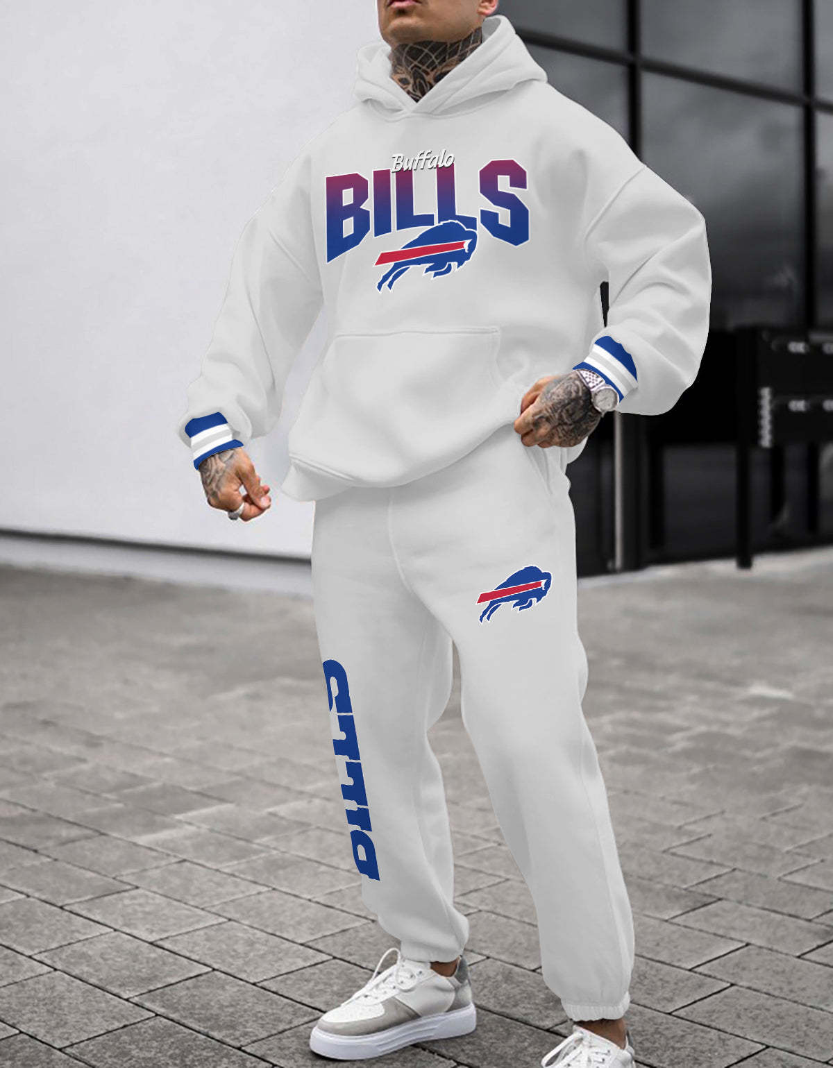 (Fleece-Lined Hoodie) Buffalo Bills 3D Printed Pullover Fleece-Lined Hoodie And Sweatpant 2pcs Tracksuits