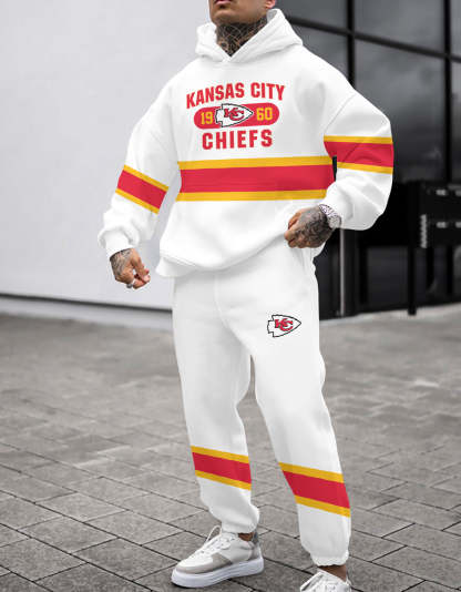 (Fleece-Lined Hoodie) Kansas City Chiefs 3D Printed Pullover Fleece-Lined Hoodie And Sweatpant 2pcs Tracksuits