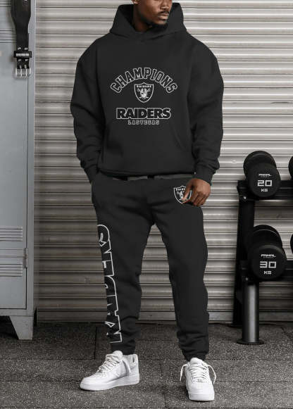 (Fleece-Lined Hoodie) Las Vegas Raiders 3D Printed Pullover Fleece-Lined Hoodie And Sweatpant 2pcs Tracksuits