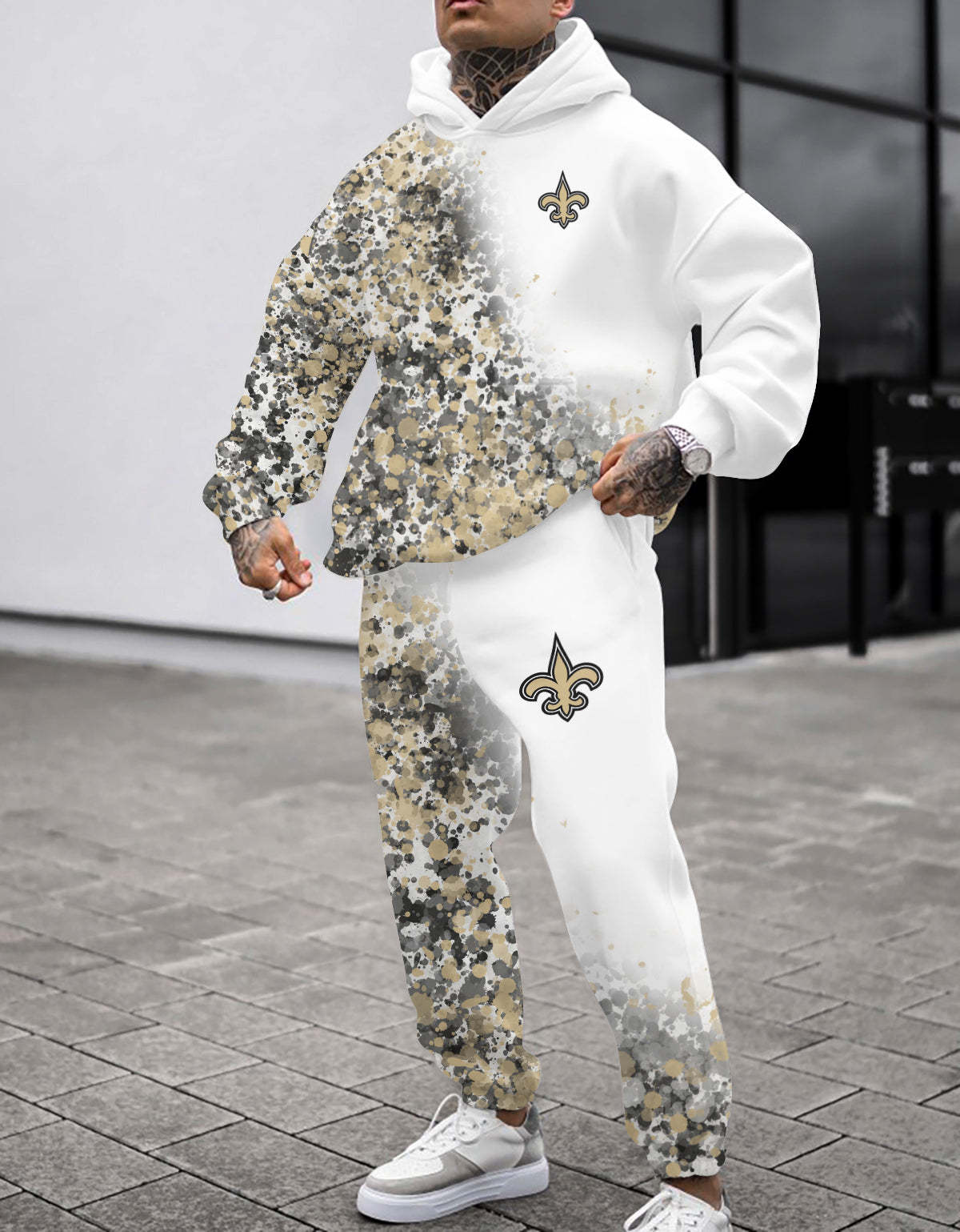(Fleece-Lined Hoodie) New Orleans Saints 3D Printed Pullover Fleece-Lined Hoodie And Sweatpant 2pcs Tracksuits
