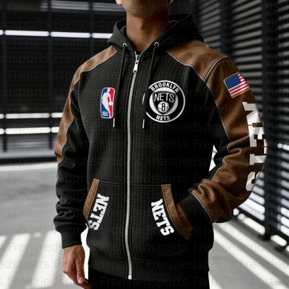 Brooklyn Nets Contrasting Shoulder Panels Hooded Zip-Up Jacket