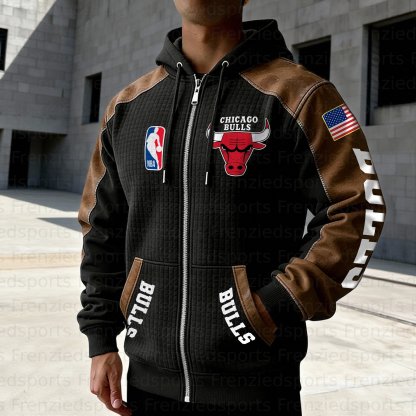 Chicago Bulls Contrasting Shoulder Panels Hooded Zip-Up Jacket