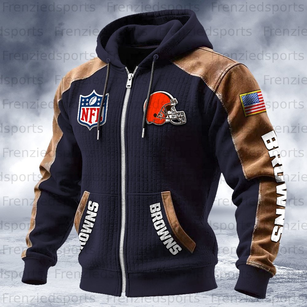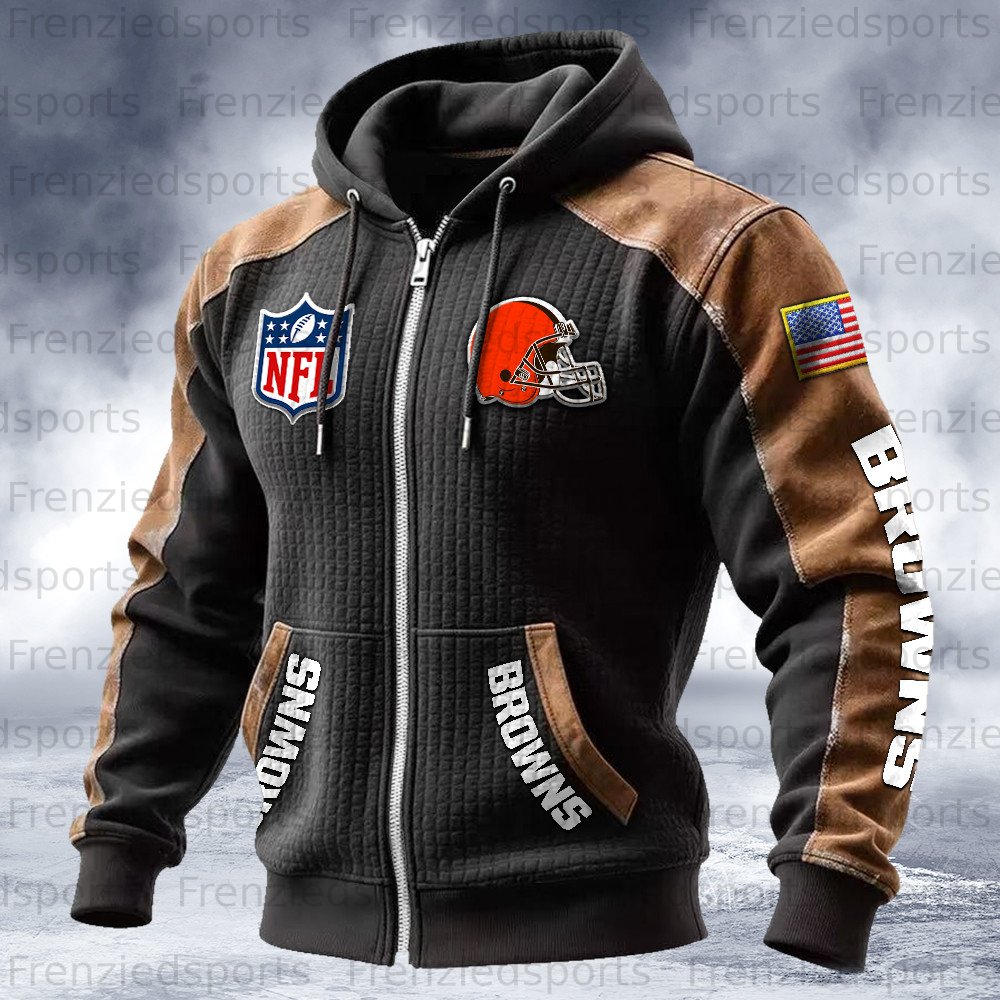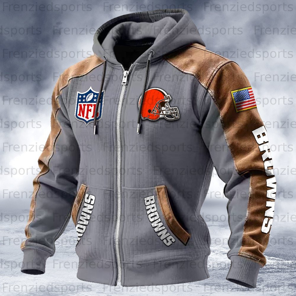 Cleveland Browns Contrasting Shoulder Panels Hooded Zip-Up Jacket