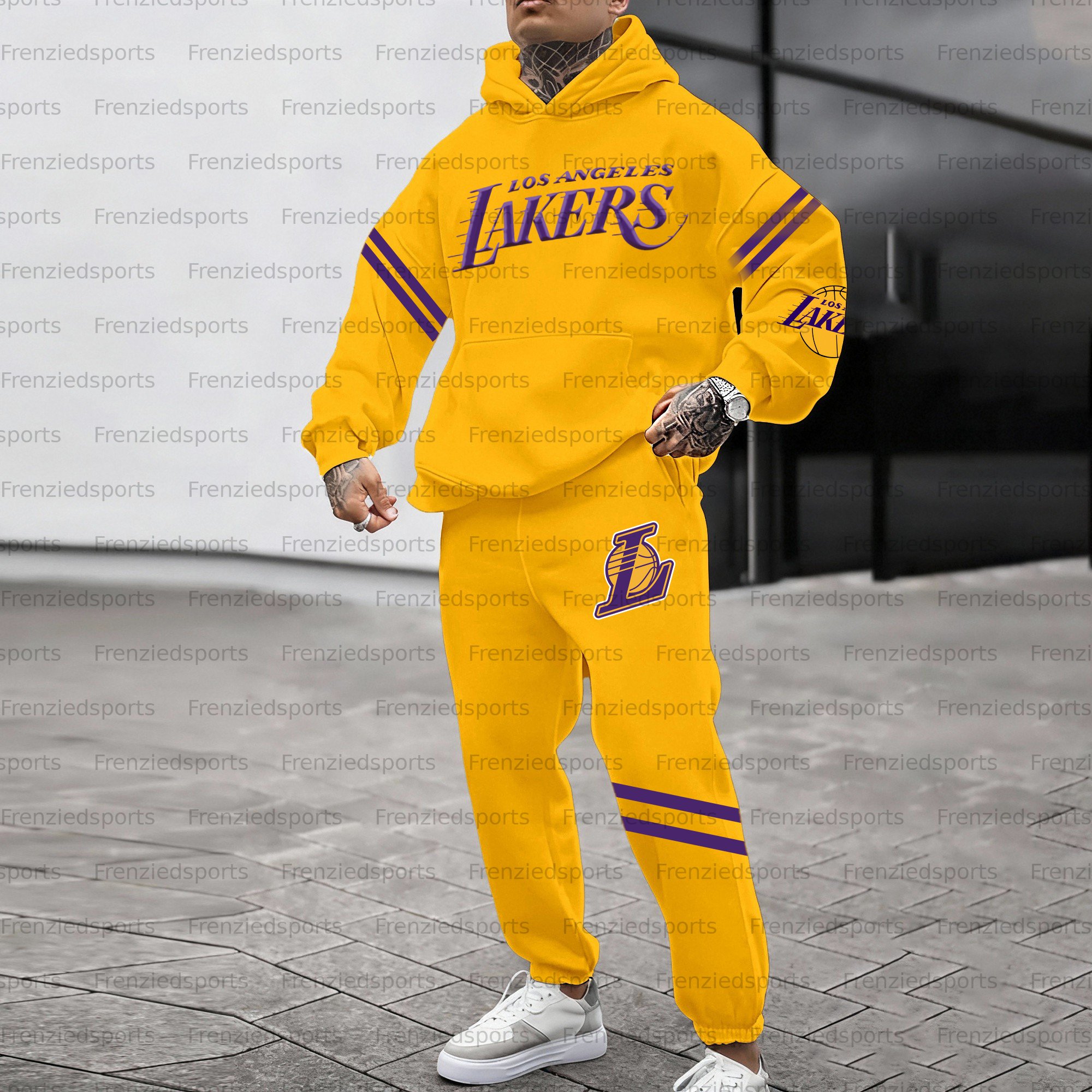 (Fleece-Lined Hoodie) ”Los Angeles Lakers“3D Printed Pullover Hoodie And Sweatpant 2pcs Tracksuits