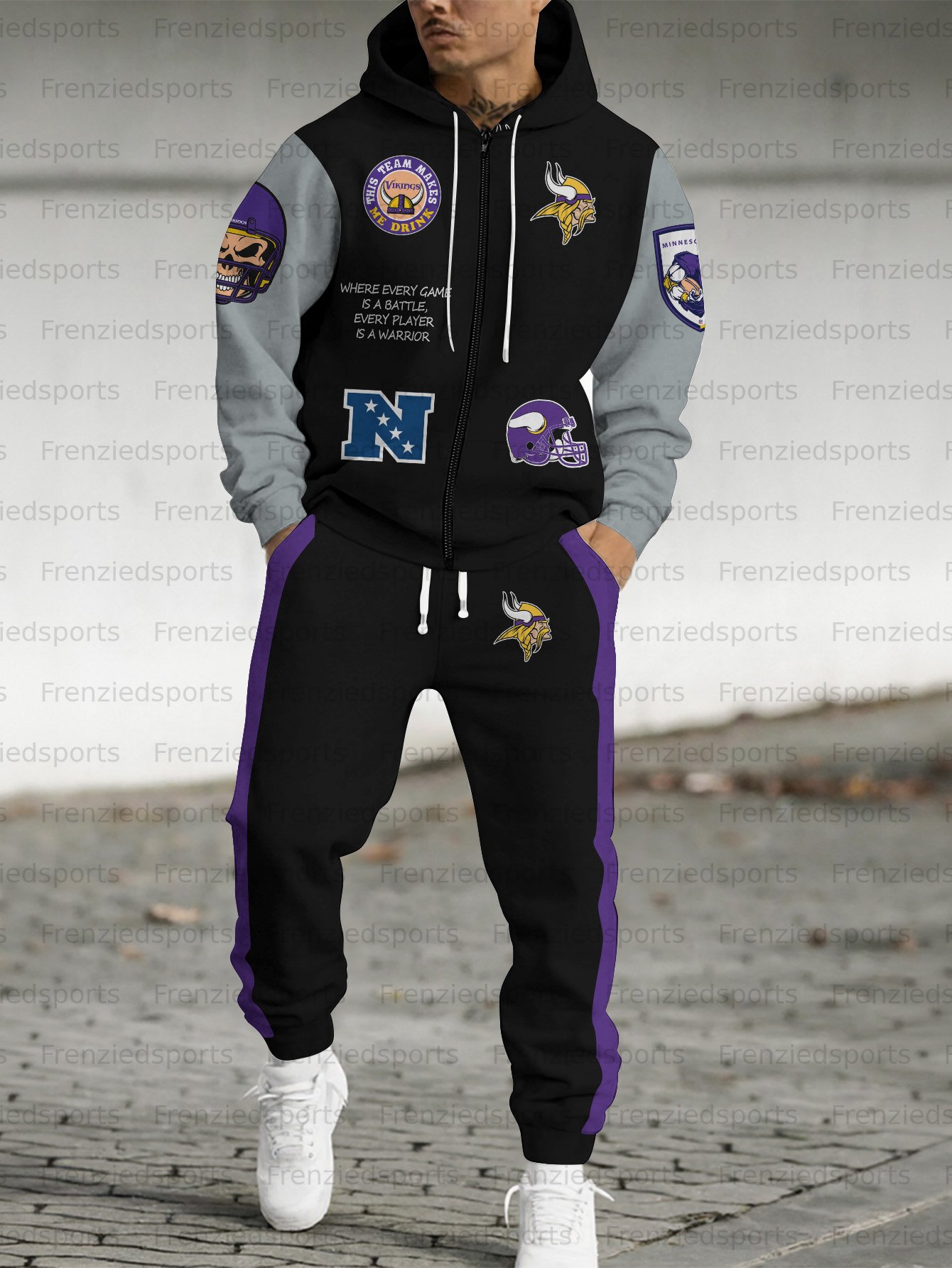 (Fleece-Lined Zip-up Hoodie) Minnesota Vikings Zip-up Hoodie & Pants 2 Pieces Set