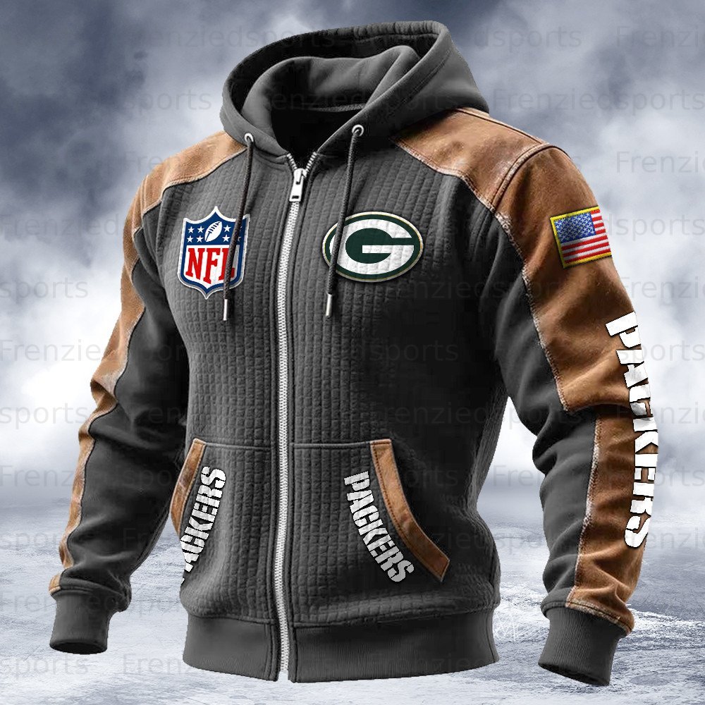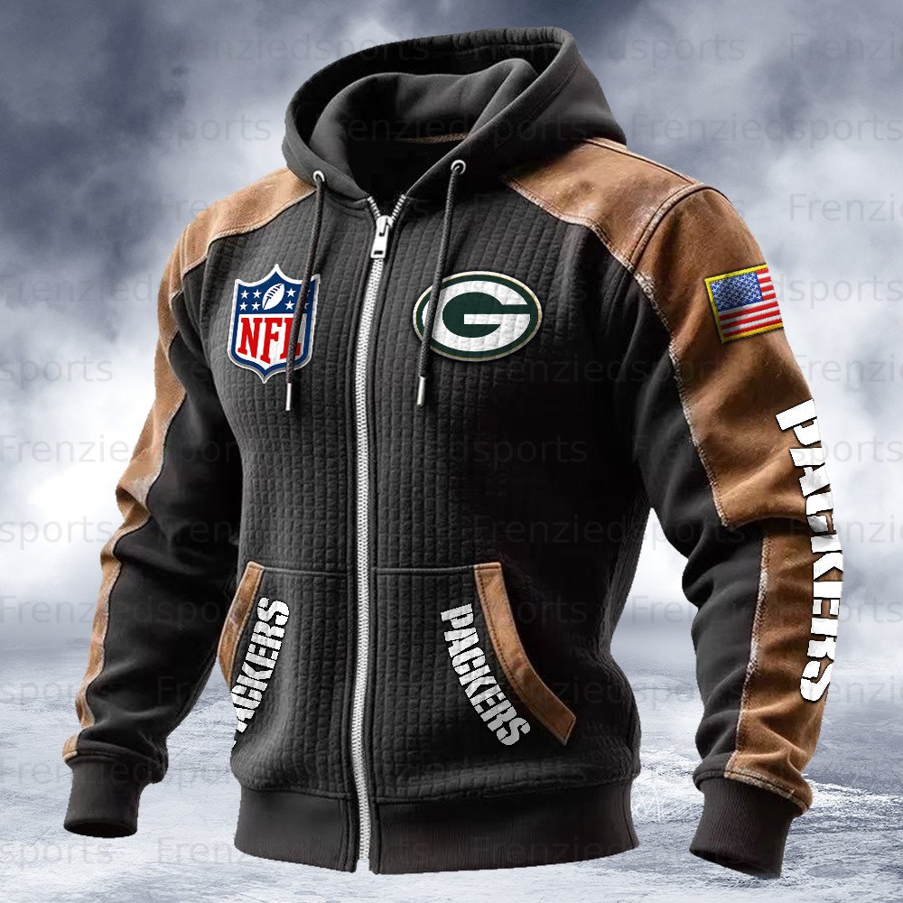 Green Bay Packers Contrasting Shoulder Panels Hooded Zip-Up Jacket