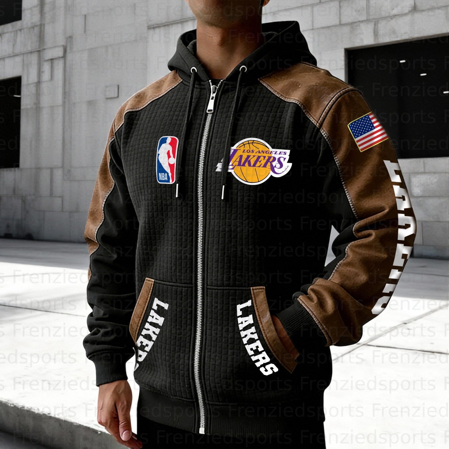 Los Angeles Lakers Contrasting Shoulder Panels Hooded Zip-Up Jacket