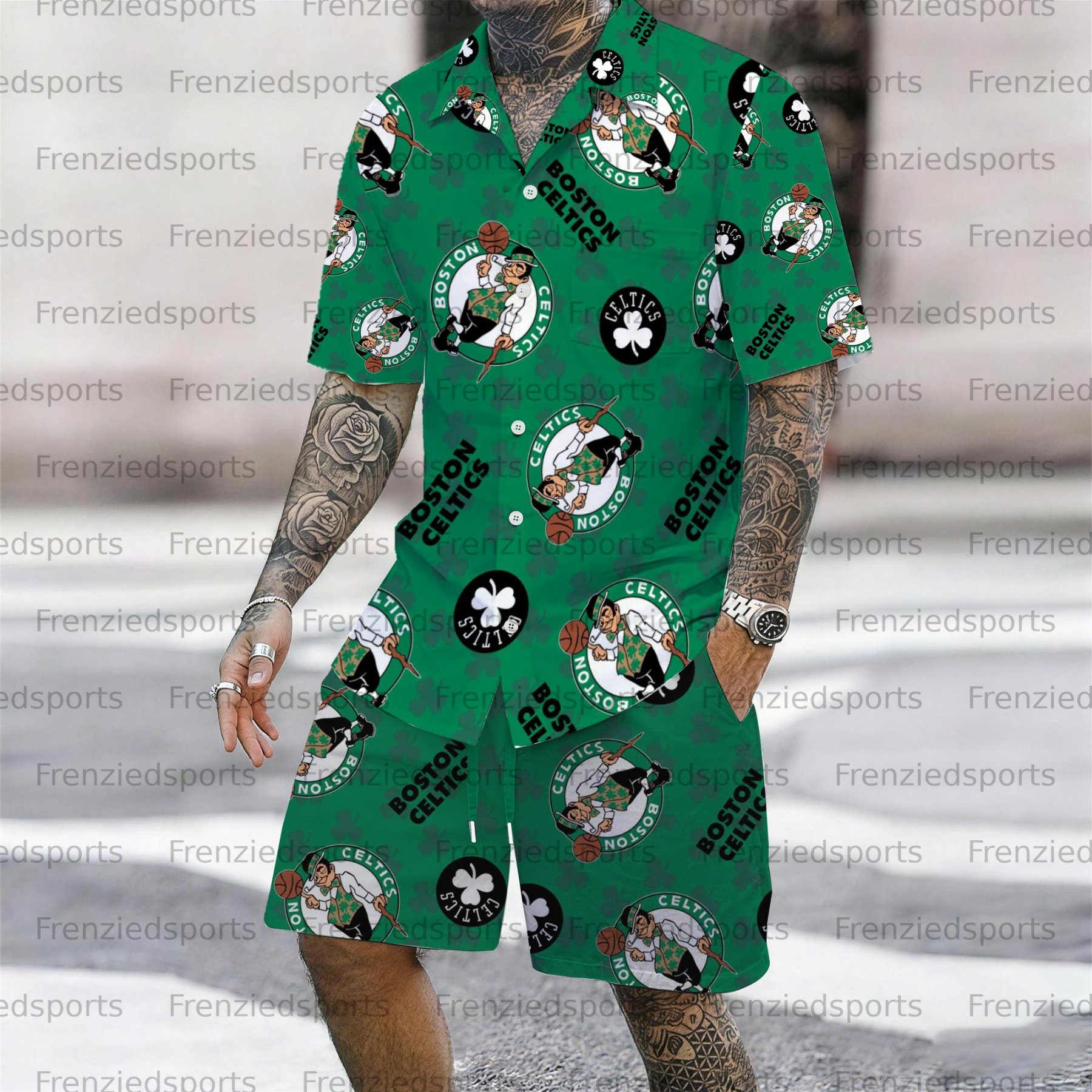 Men's “Boston Celtics " Short-sleeved Shirt Set