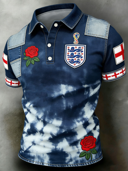 Men's British Football-Themed Polo Shirt with Artistic Print and Contrast Paneling