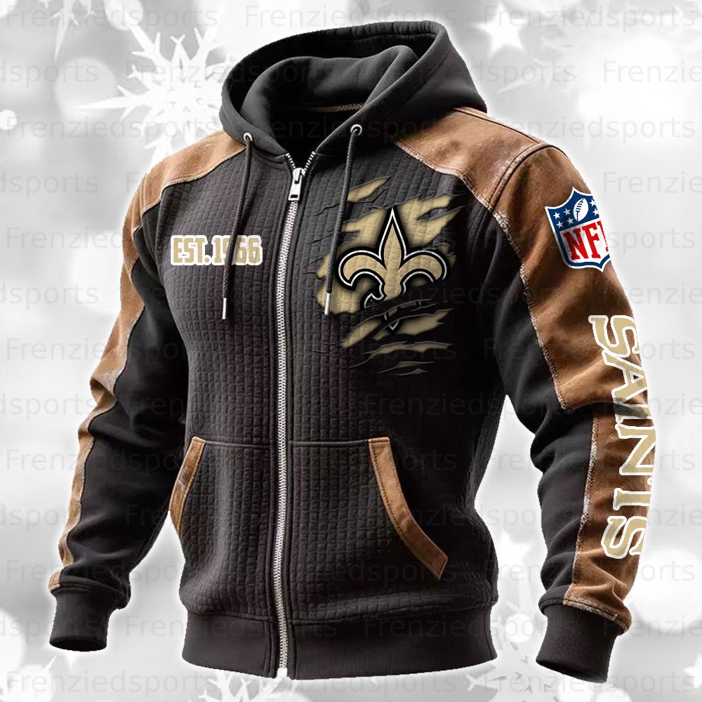 New Orleans Saints Contrasting Shoulder Panels Hooded Zip-Up Jacket