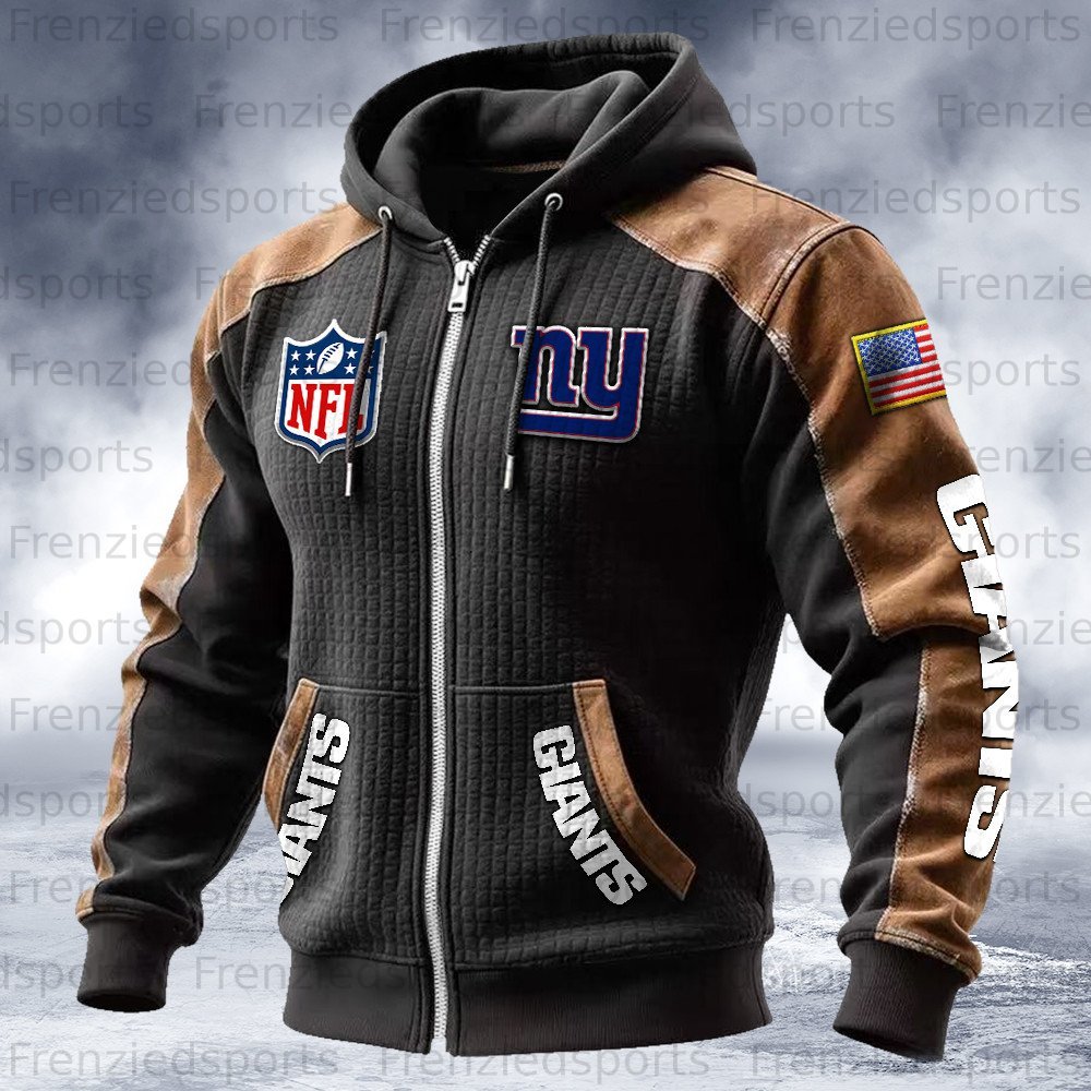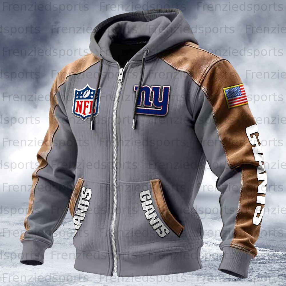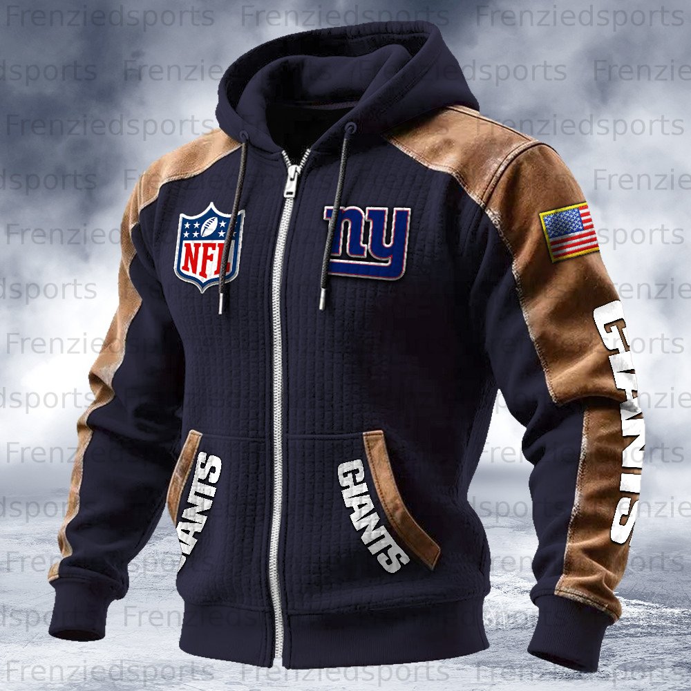 New York Giants Contrasting Shoulder Panels Hooded Zip-Up Jacket
