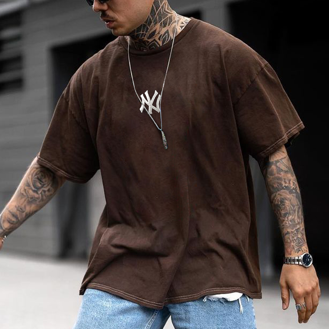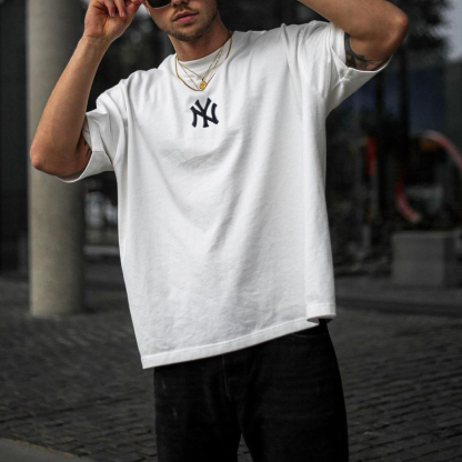 Oversized Casual Men's "New York Professional Baseball Print"ed T-Shirt