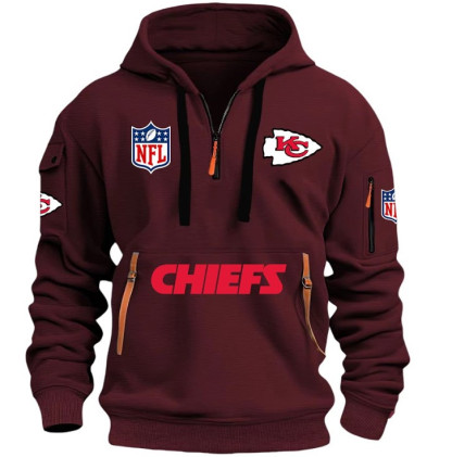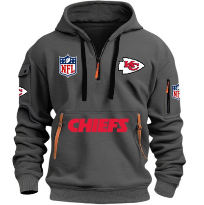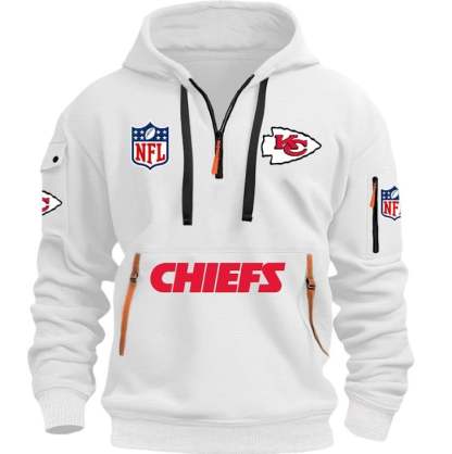 Unisex "Kansas City Chiefs" Graphic Streetwear Vintage HALF ZIPPER Hoodie