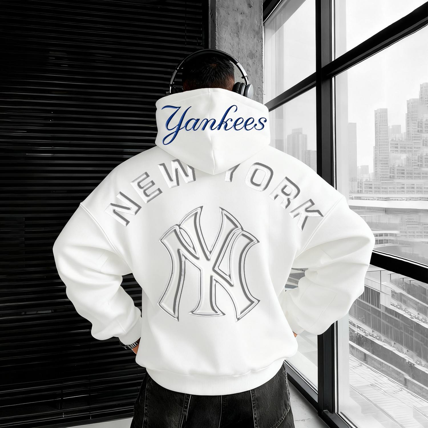 • Design Elements: Large back logo print, sleeve text design, hood with embroidered emblem