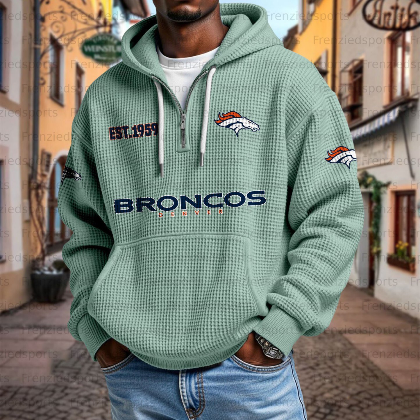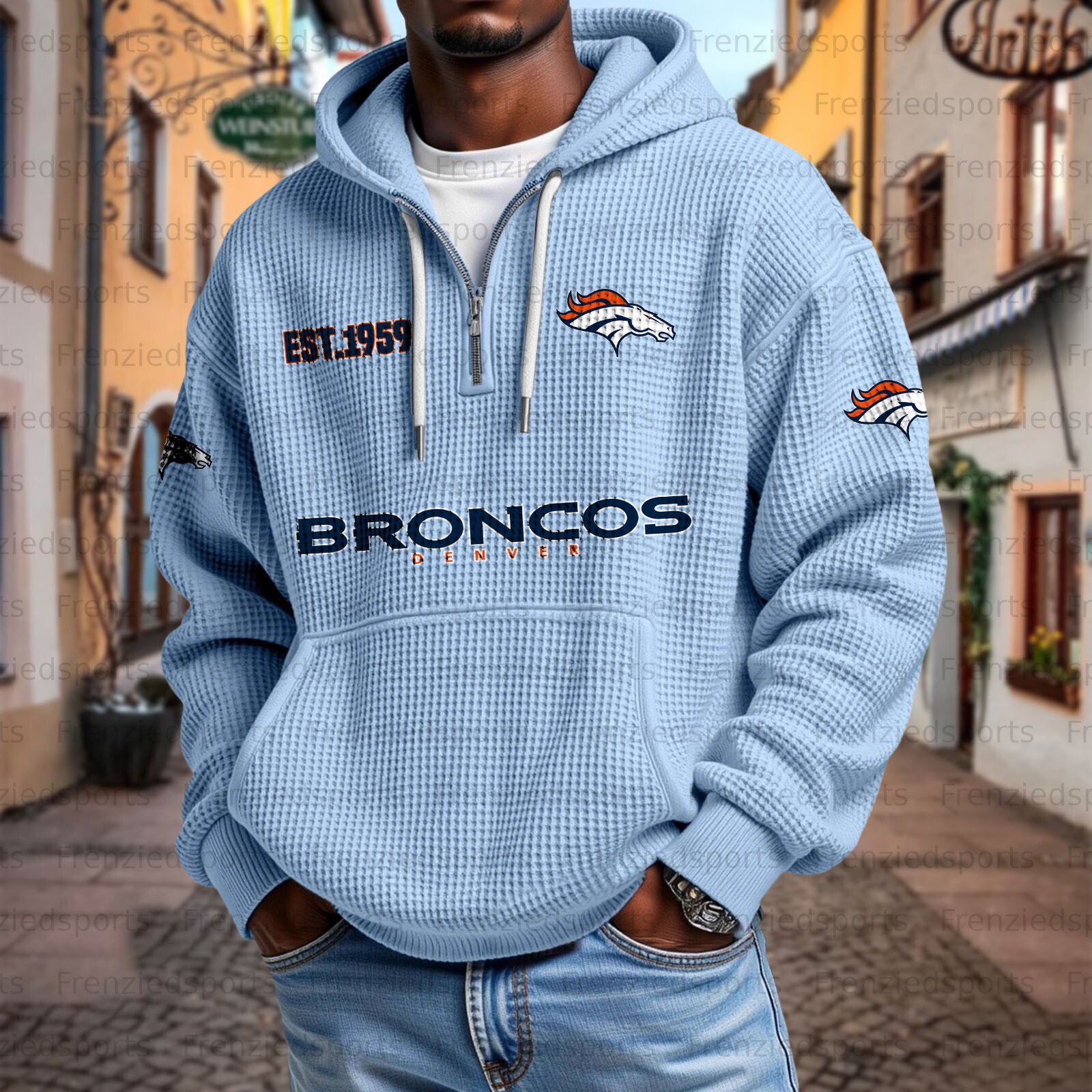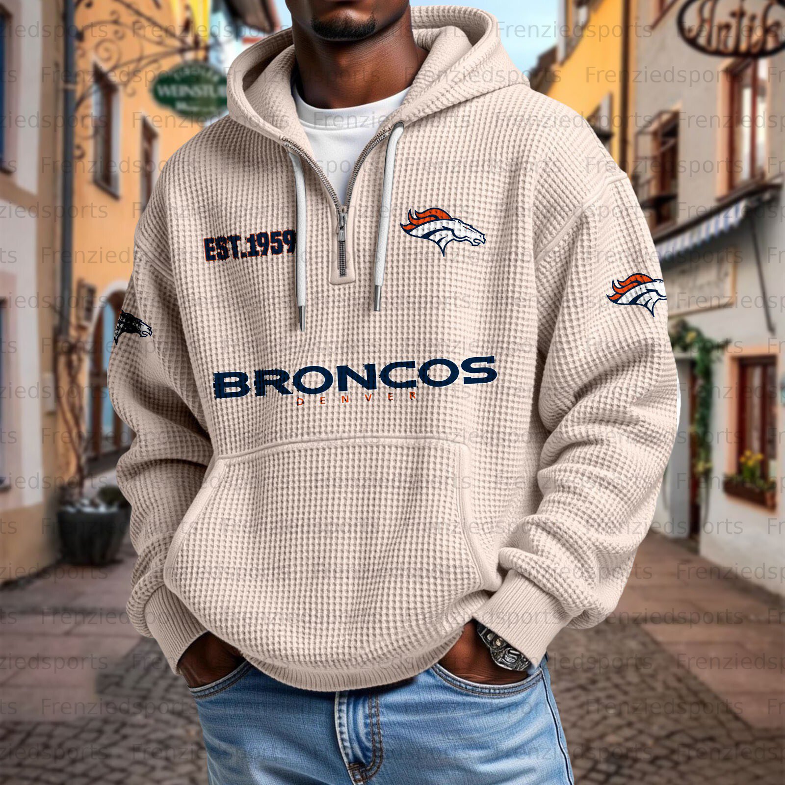 Unisex "Denver Broncos " Graphic Streetwear Vintage Waffle Fabric hoodie