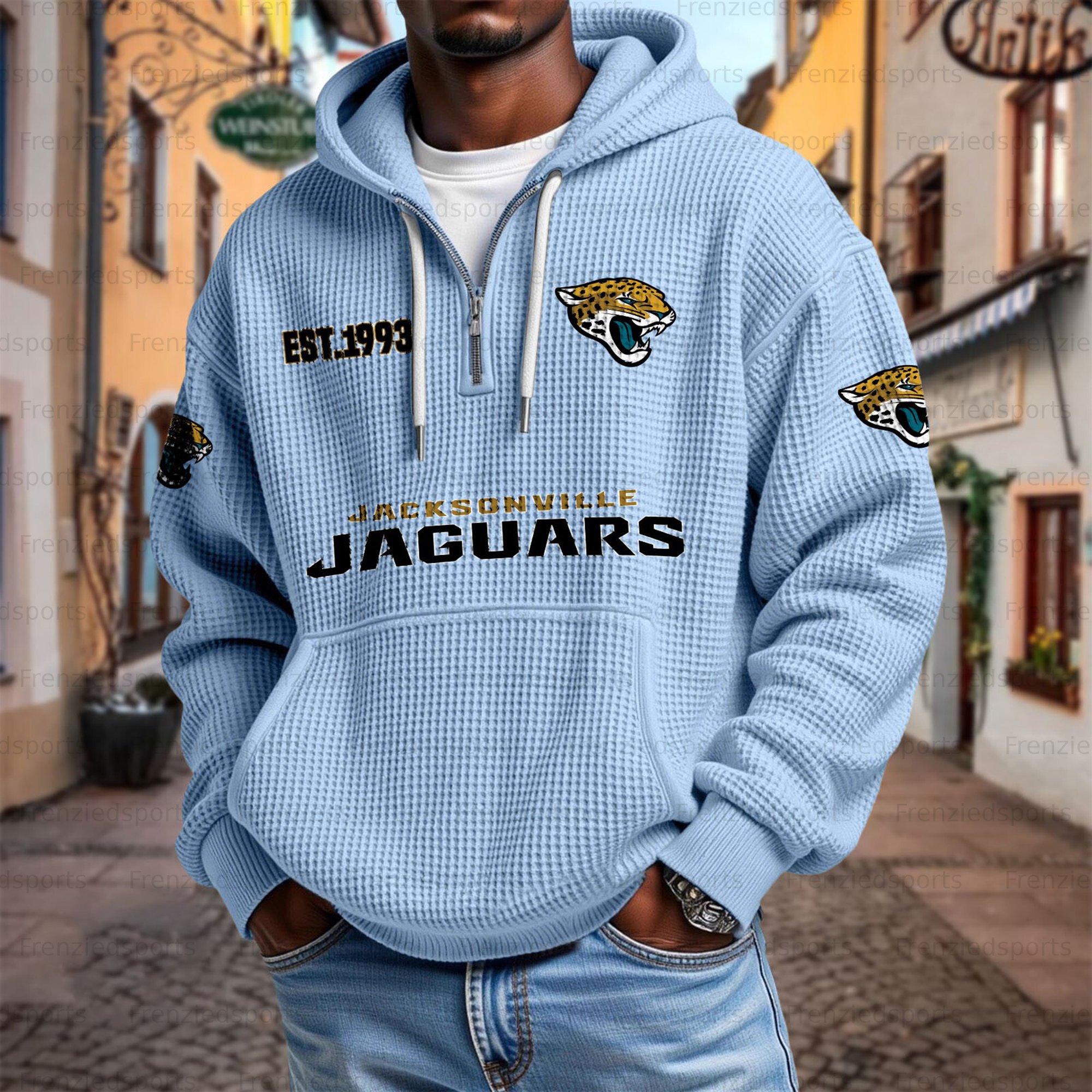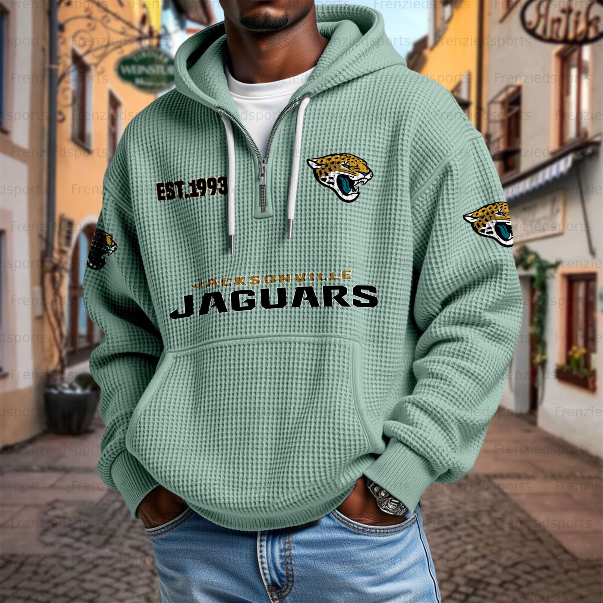 Unisex "Jacksonville Jaguars" Graphic Streetwear Vintage Waffle Fabric hoodie