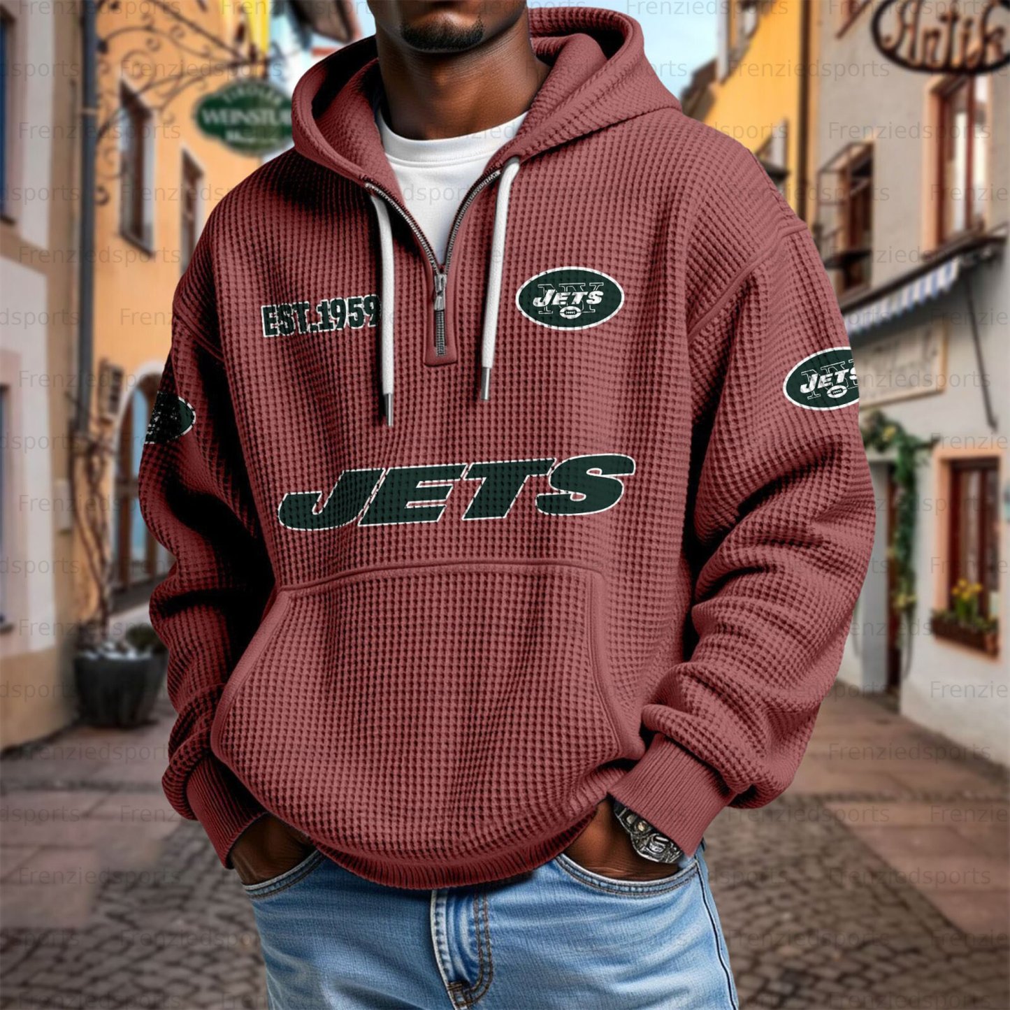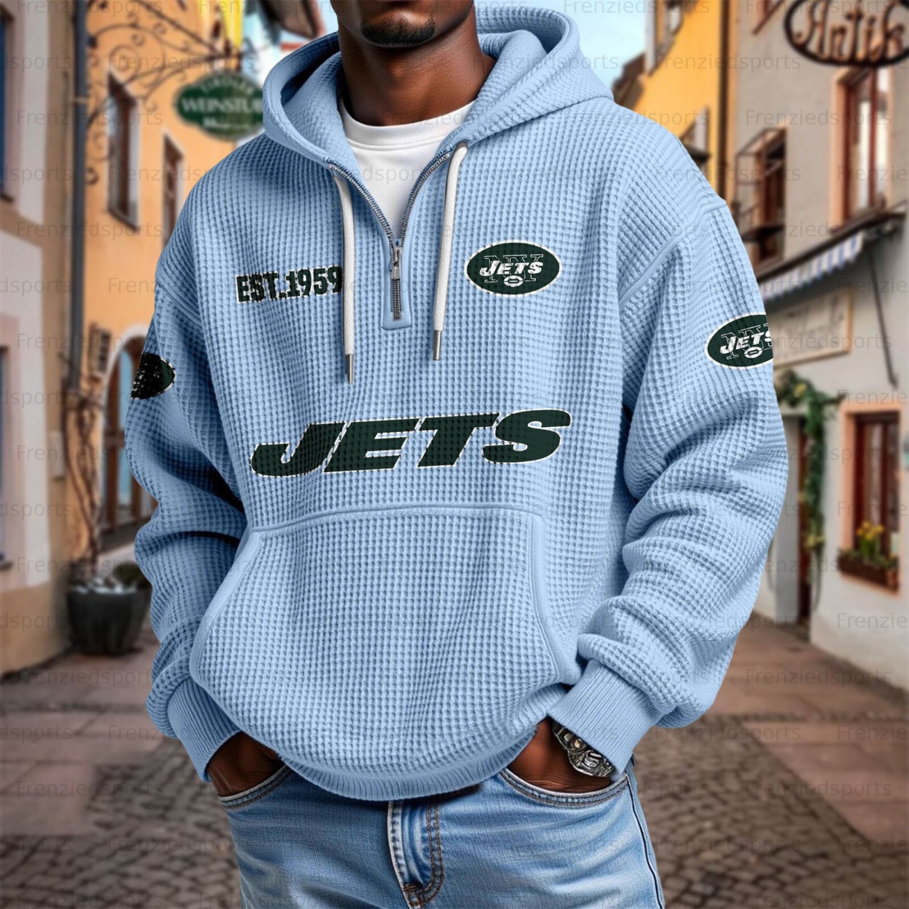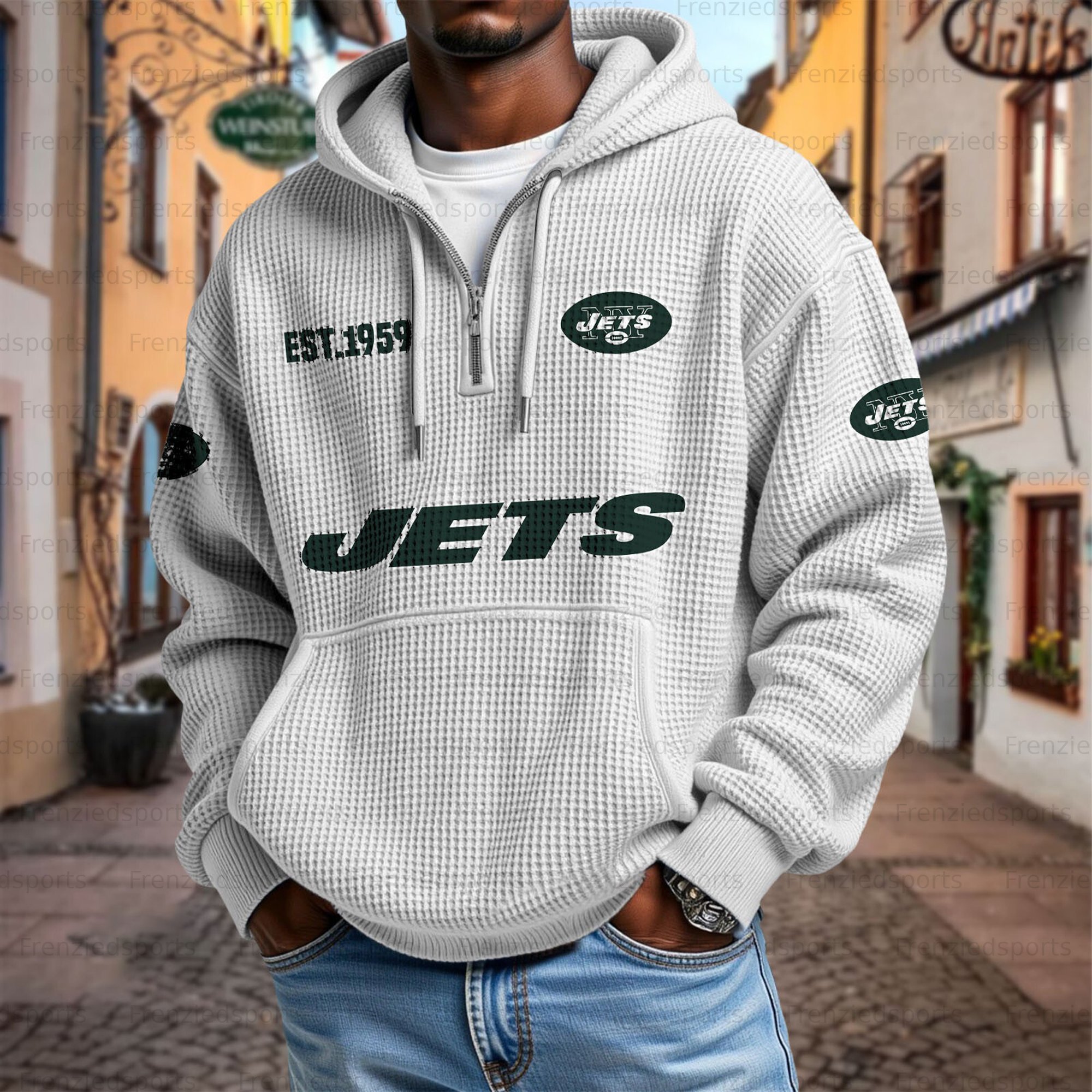Unisex "New York Jets" Graphic Streetwear Vintage Waffle Fabric hoodie