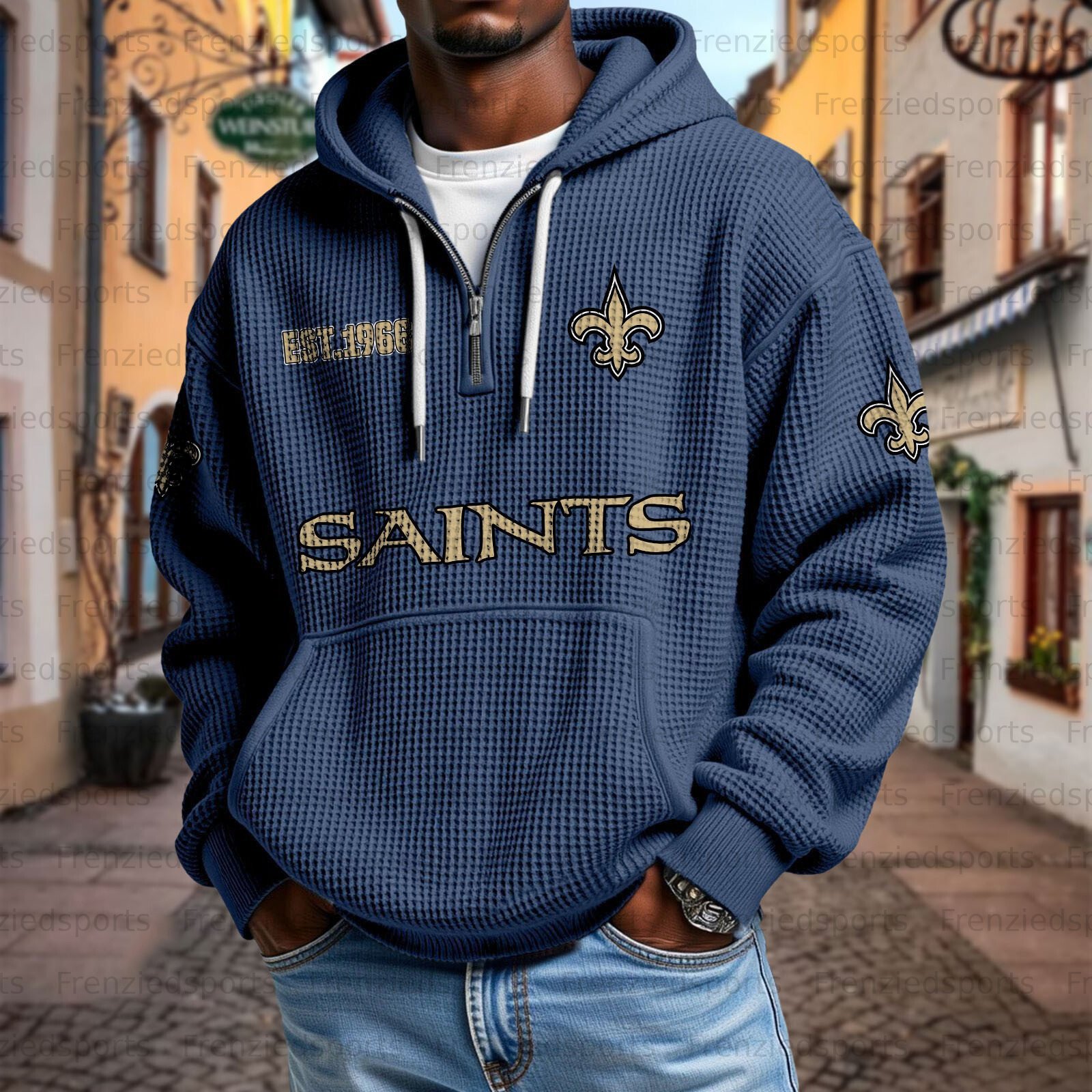 Unisex "New Orleans Saints " Graphic Streetwear Vintage Waffle Fabric hoodie